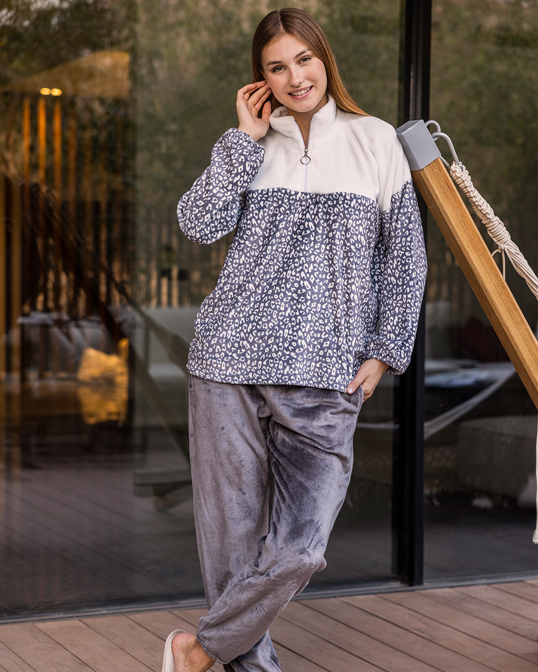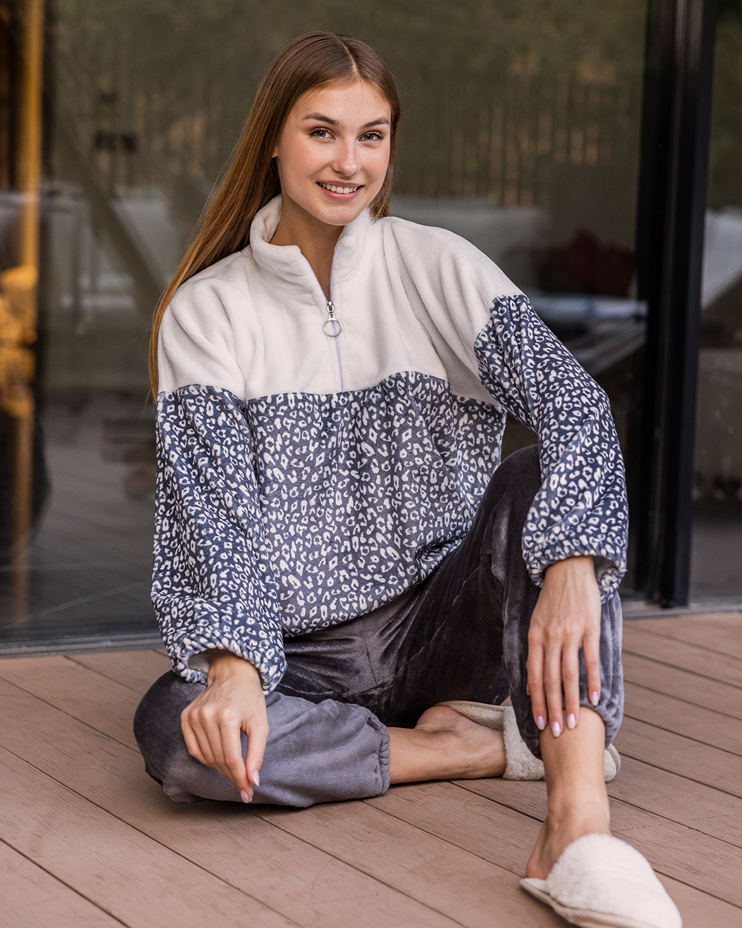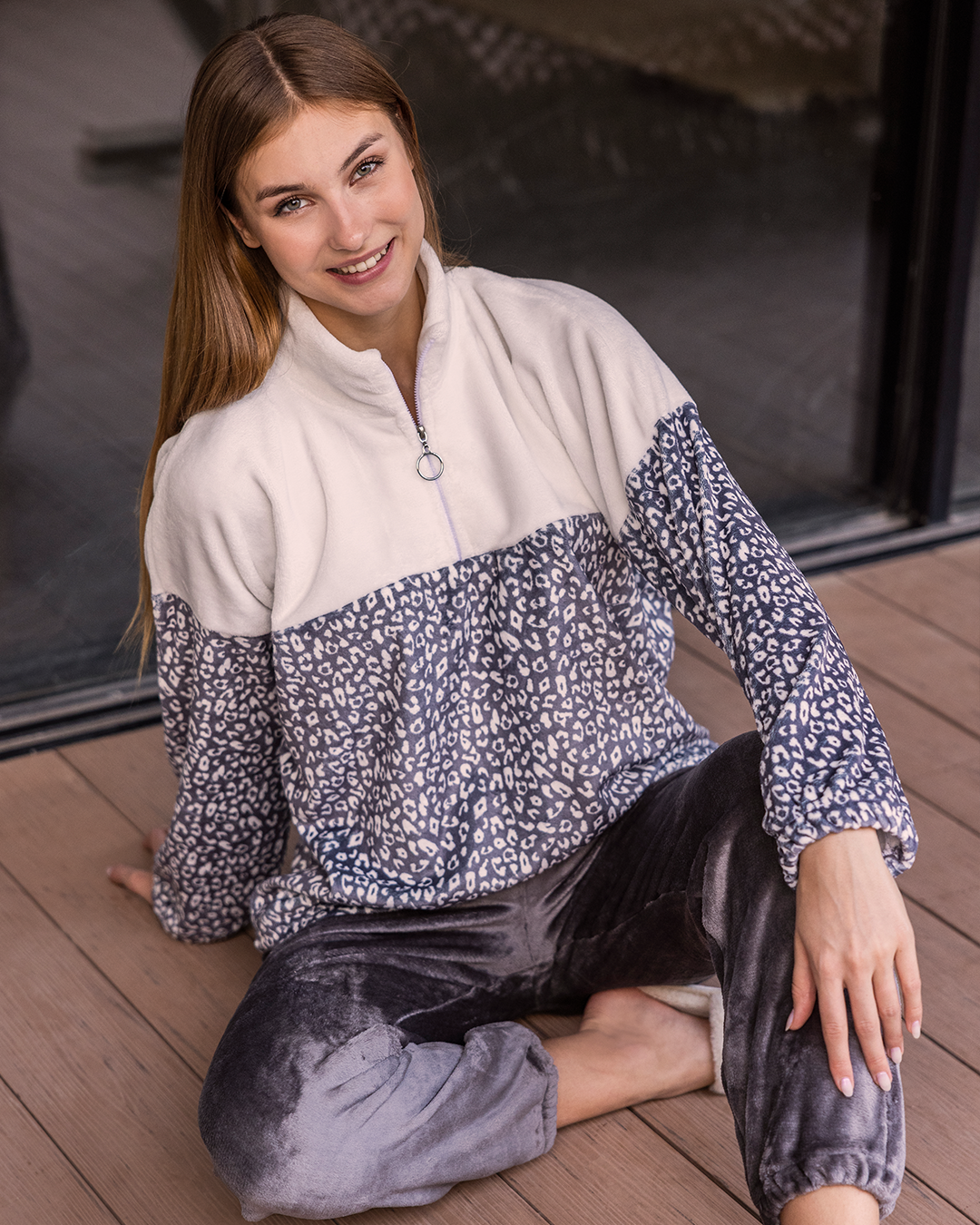 Leopard print بيجاما حريمي بولار هاف نيك بسوستة
