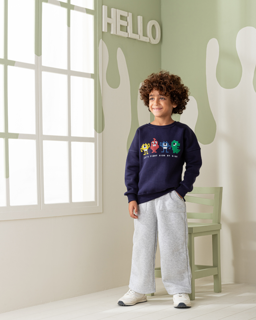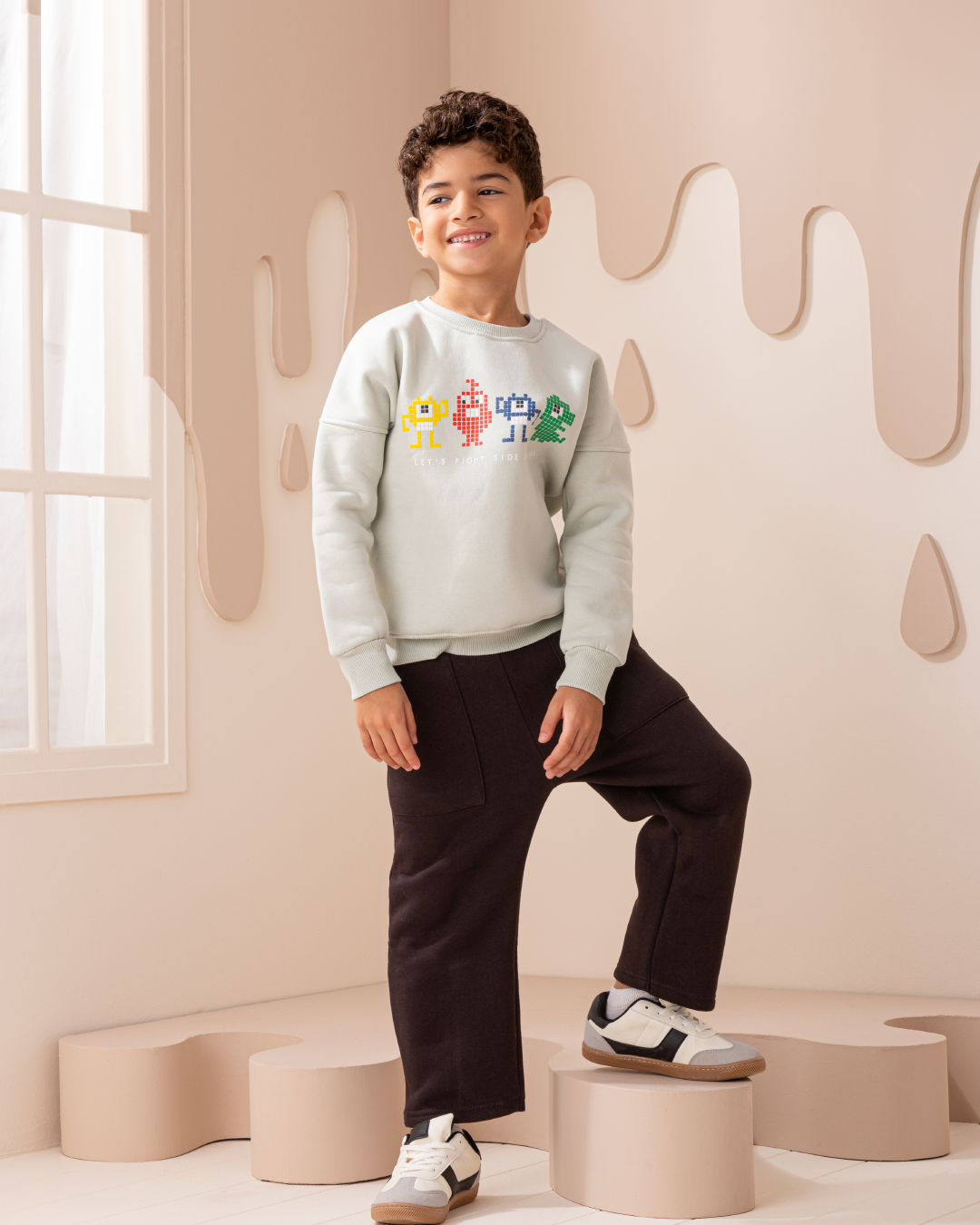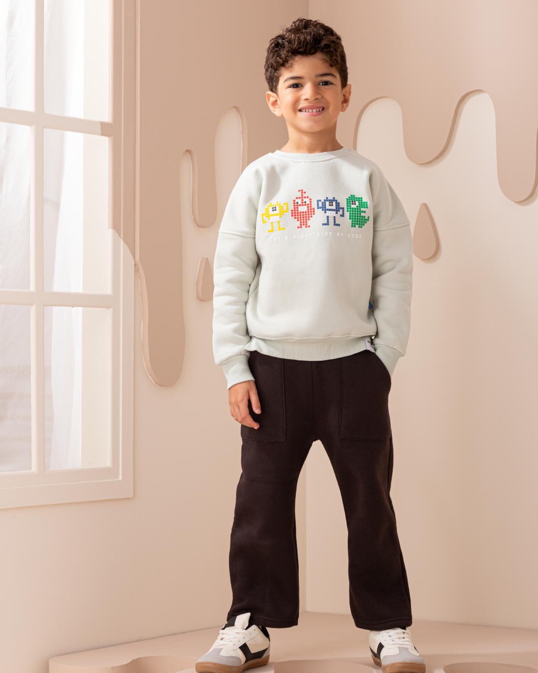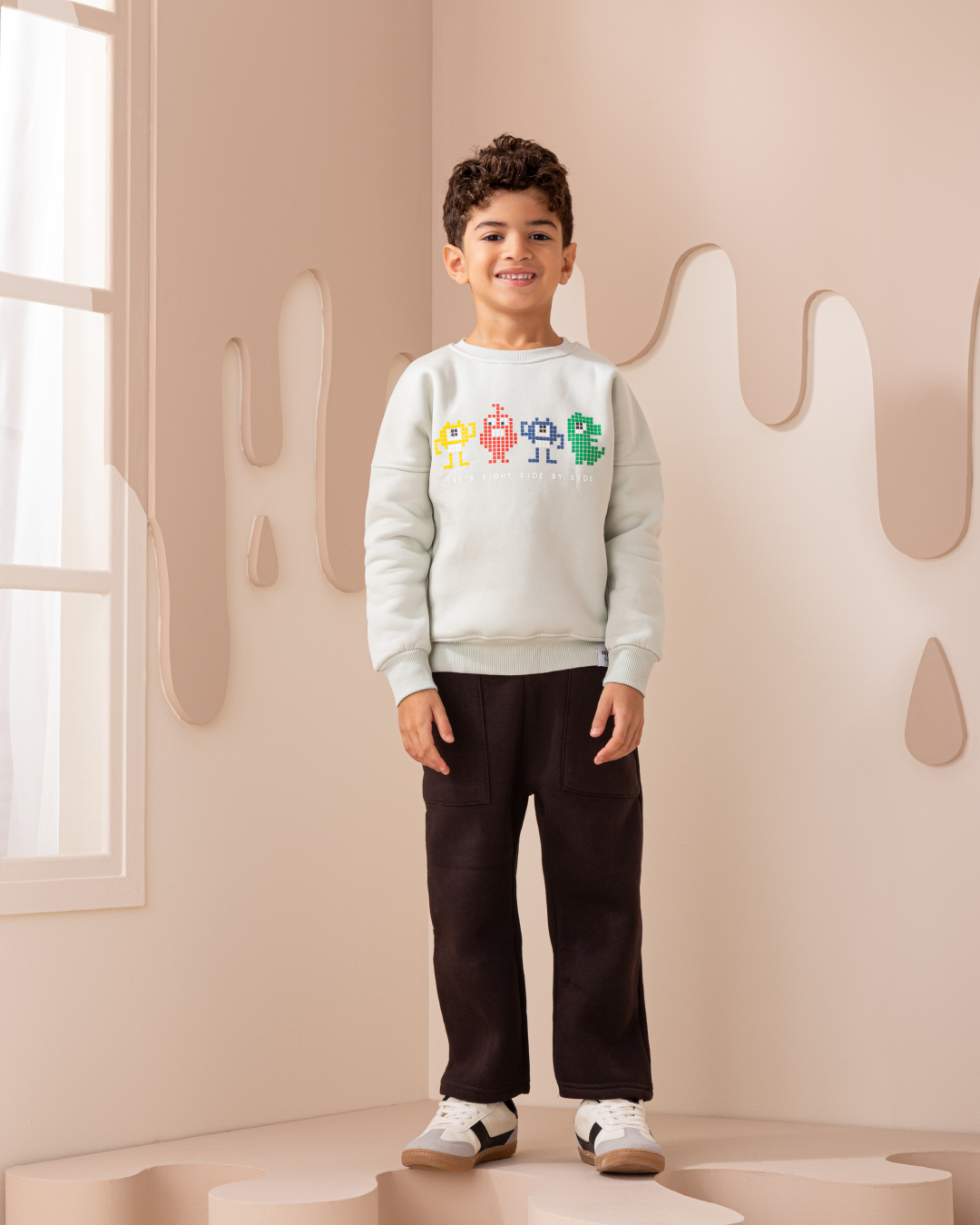 Let's Fight side by side بيجاما أولادي كُم طويل