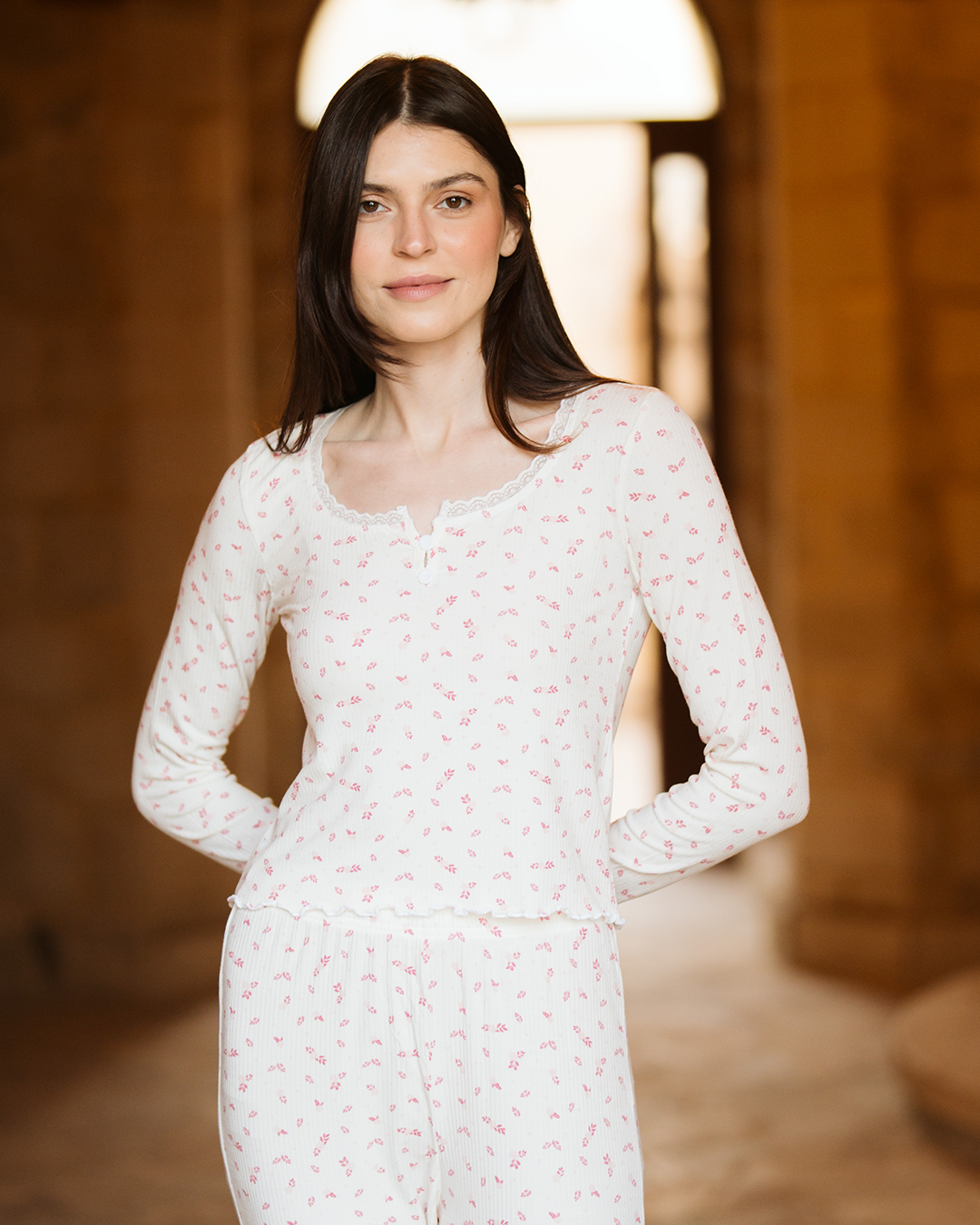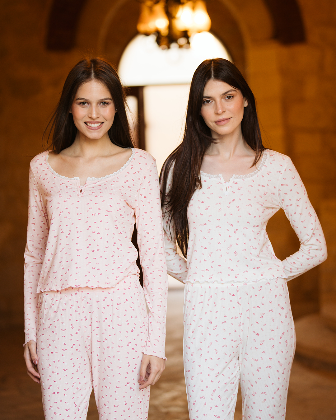 Ribbed Set بيجاما حريمي ريب مطبوع