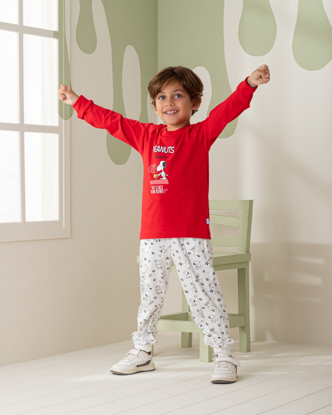 Snoopy friends بيجاما أولادي كُم طويل