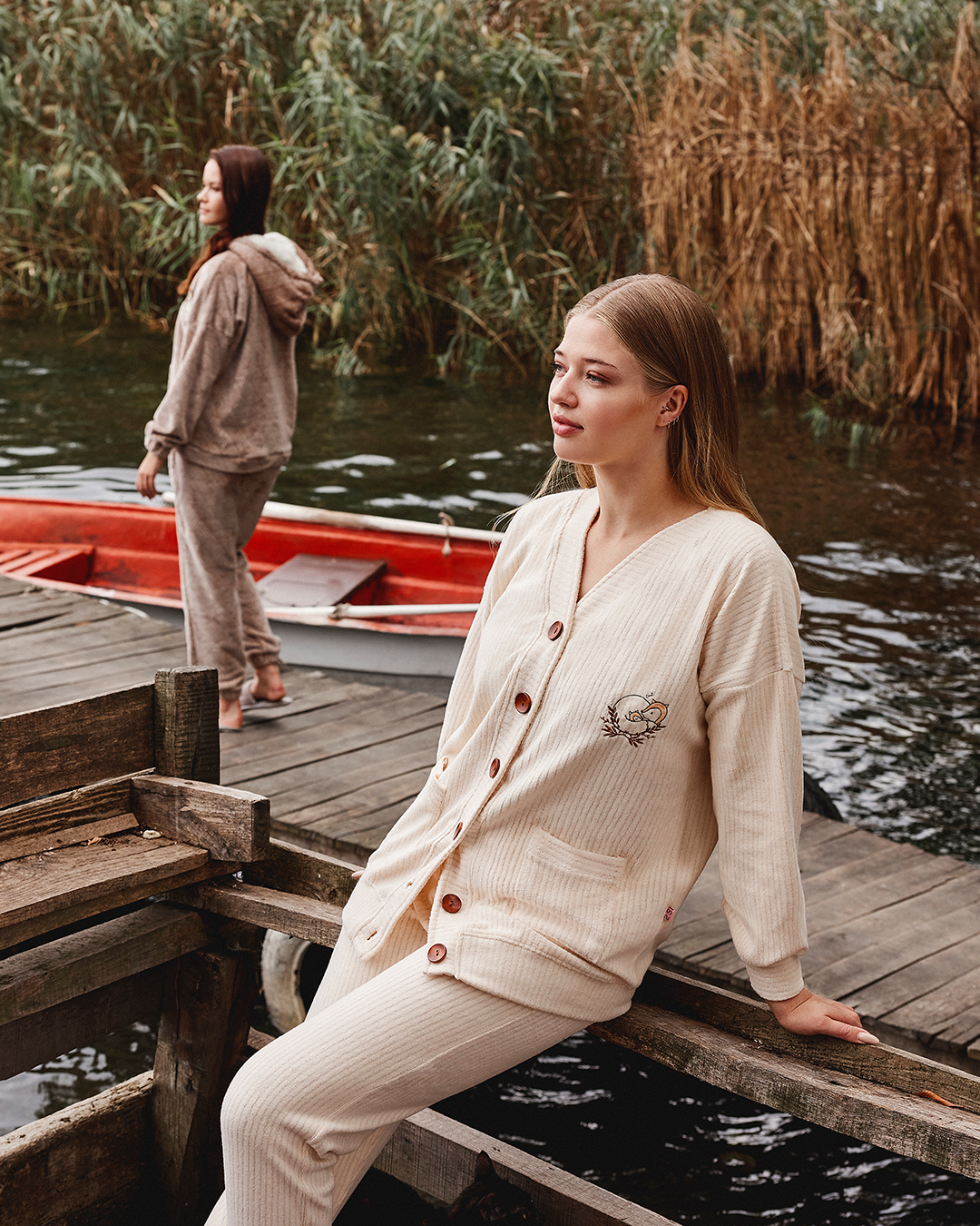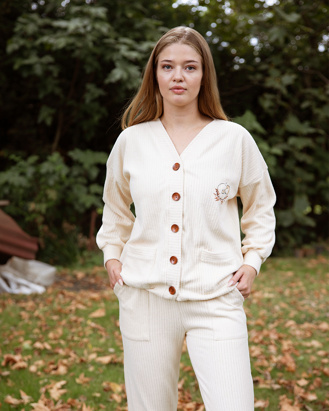 with Love بيجاما حريمي بزراير ريب مضلع