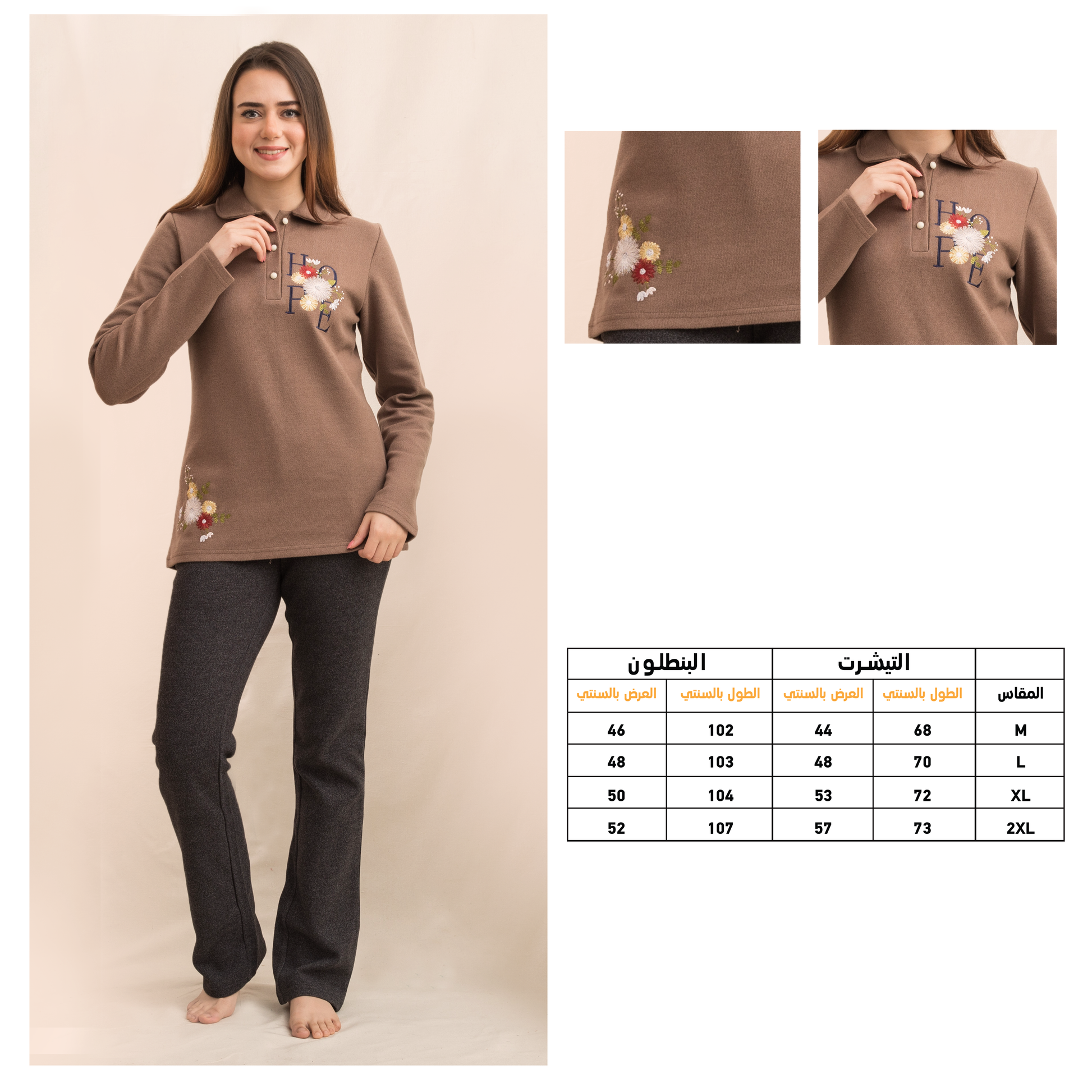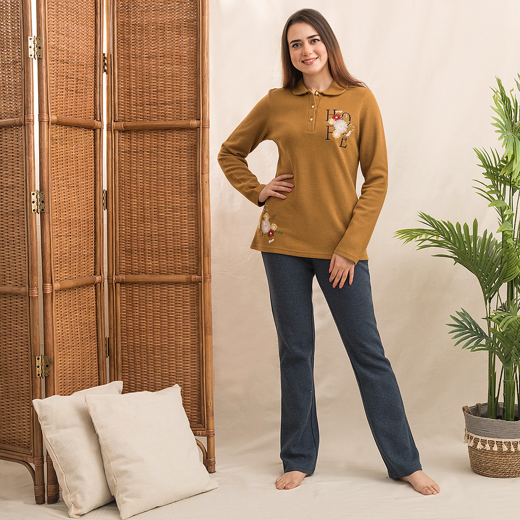Hope بيجاما كشمير مطرزه ورد