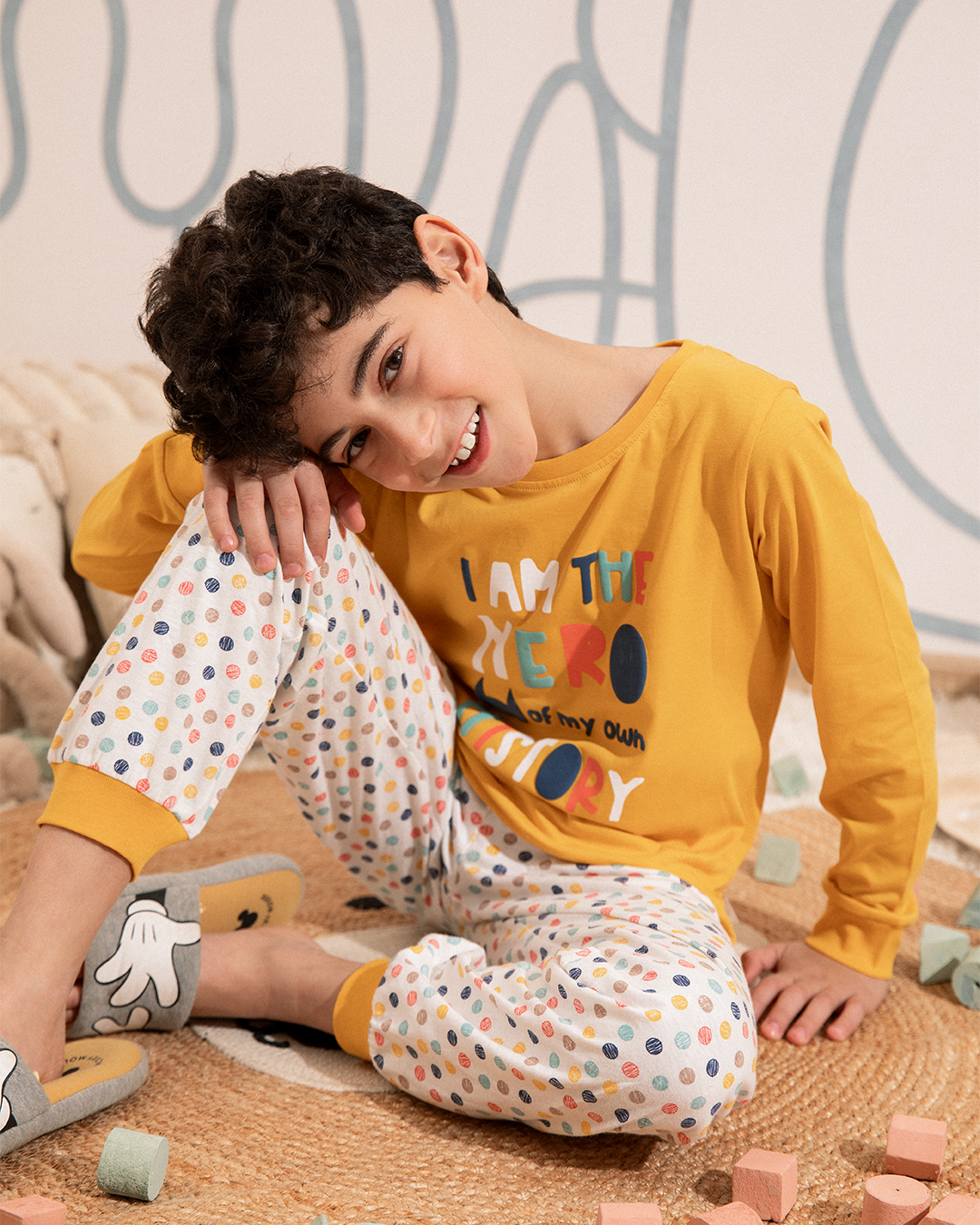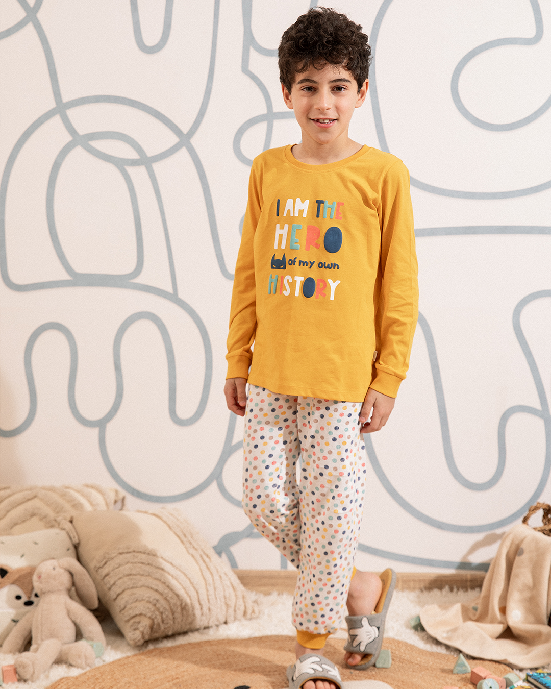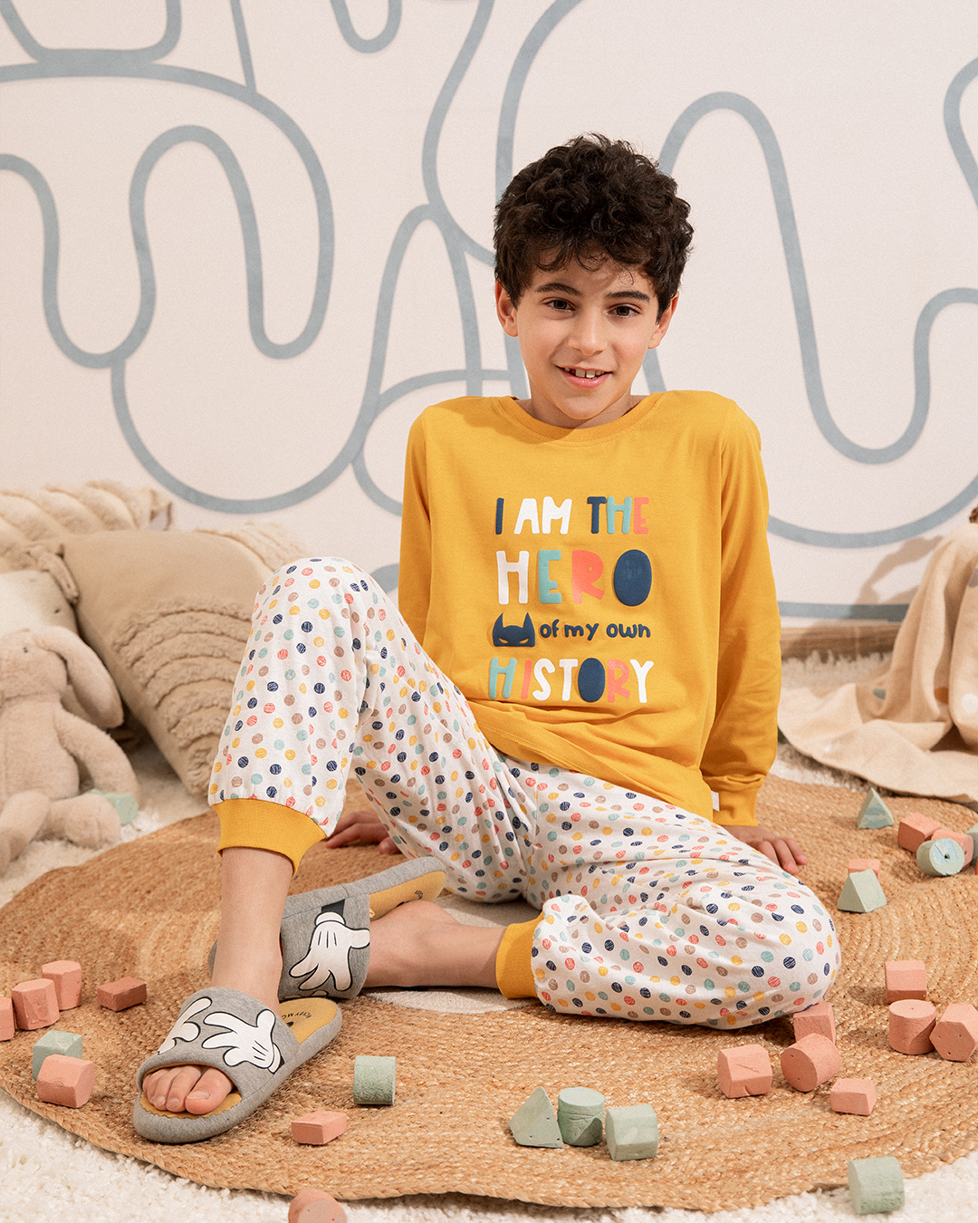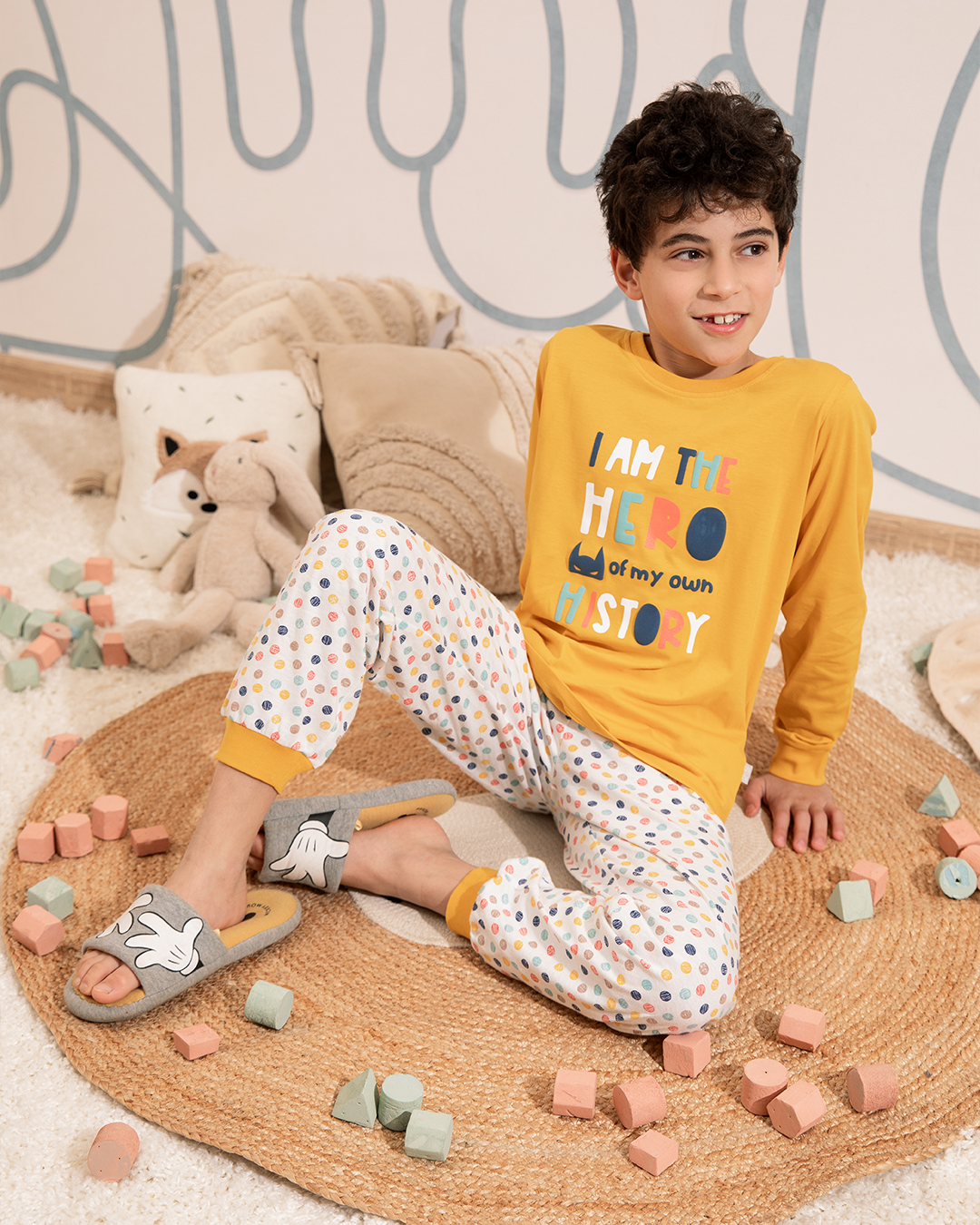 i am the Hero بيجامة اطفالي اولادي كم طويل *بنطلون مطبوع قطن