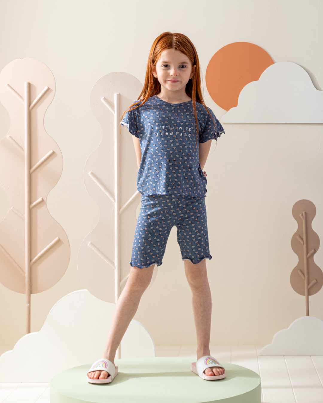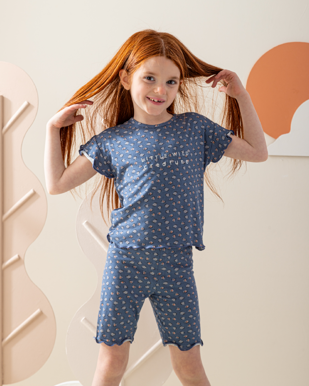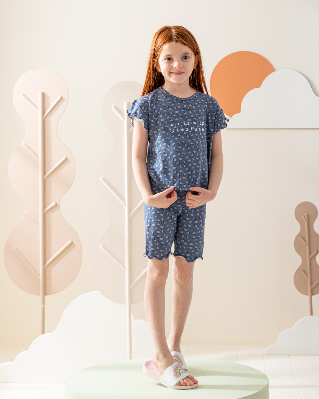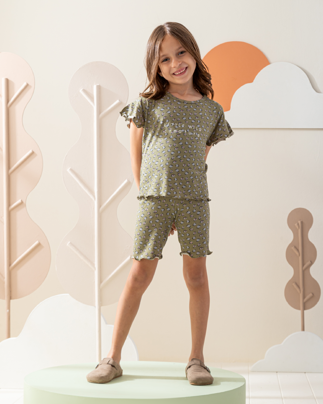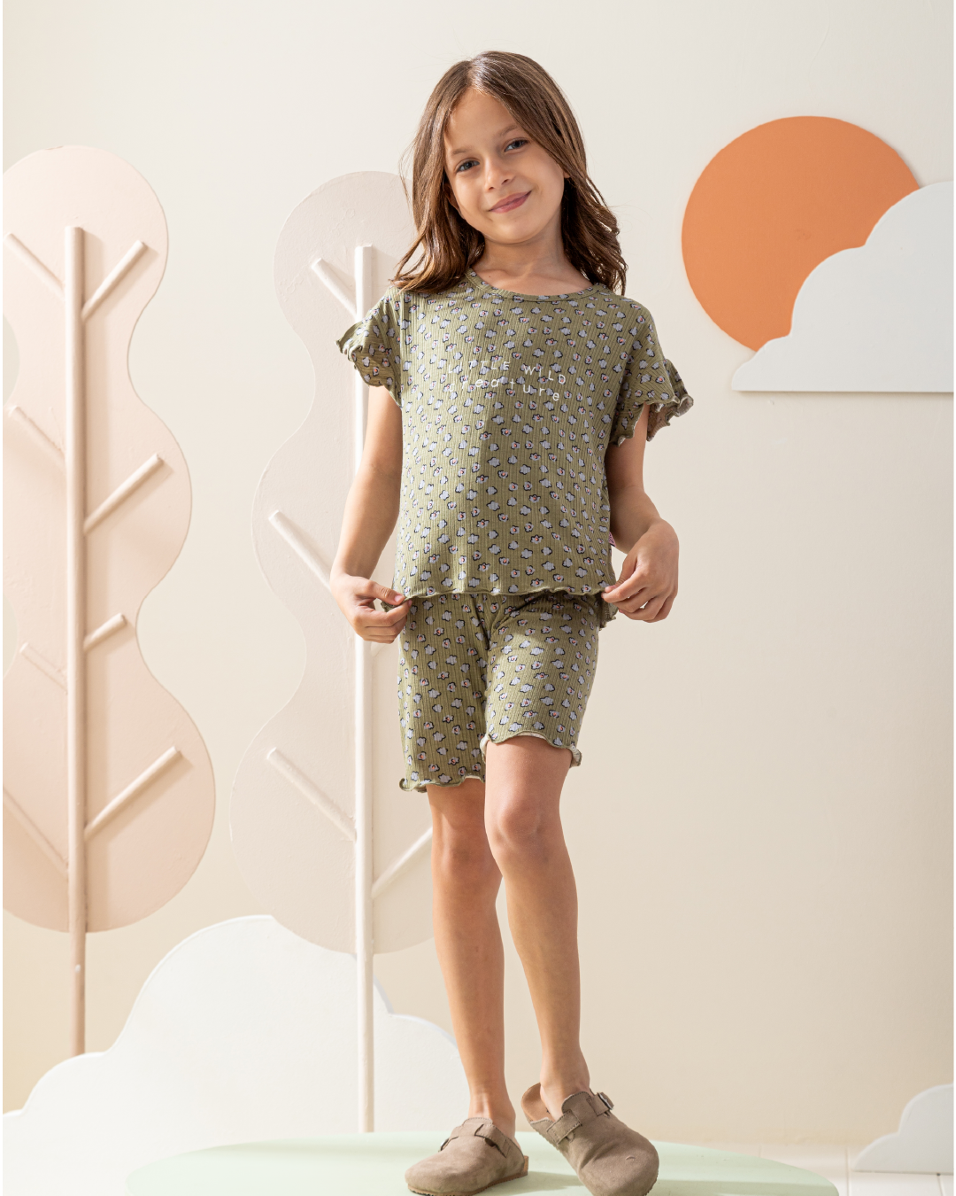 بيجاما شورت قطن مضلع كُم كورنيشة طباعه تايجر