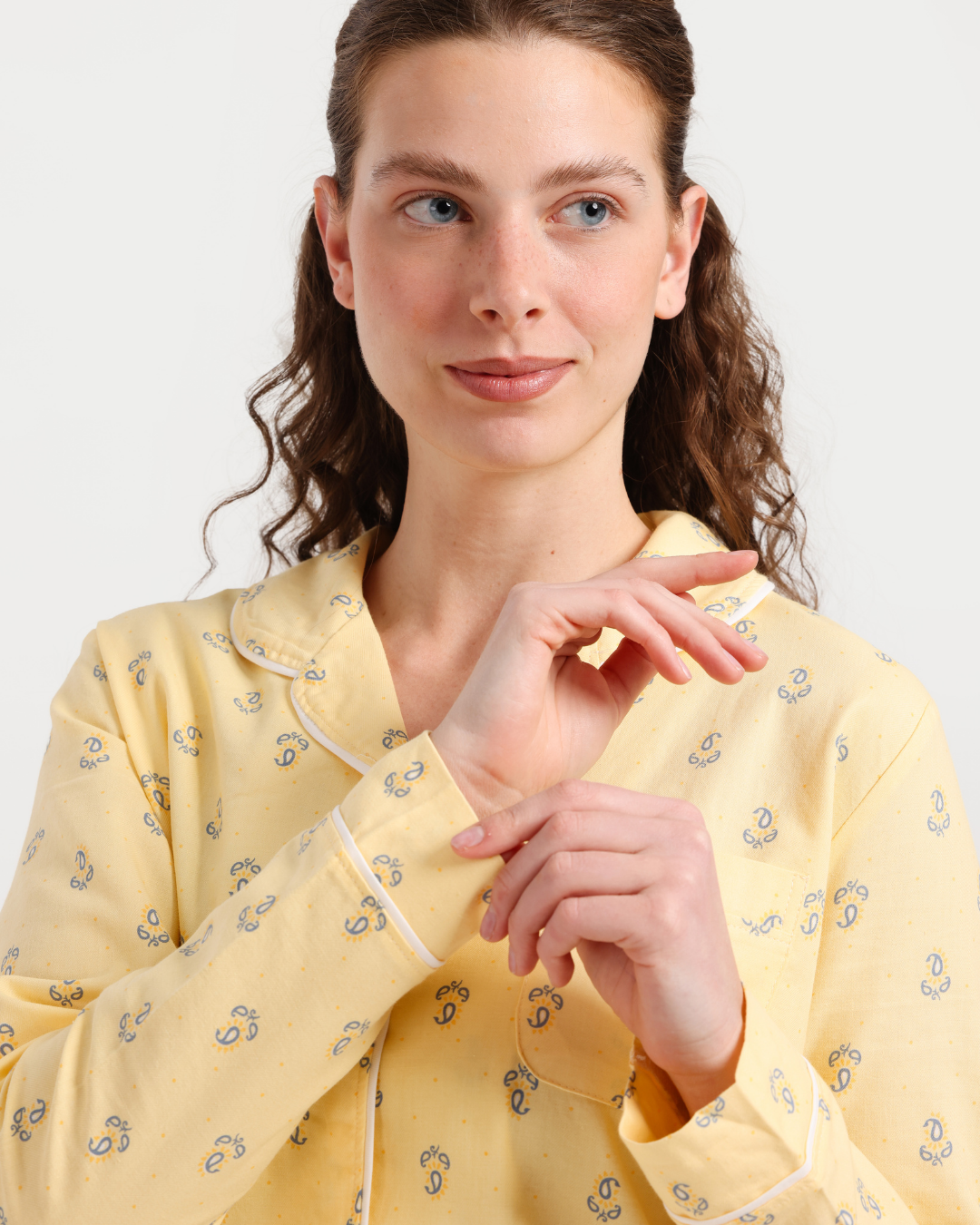 Classic Women's Pajama Set with Long Sleeves and Pants in Small Geometric Patterns