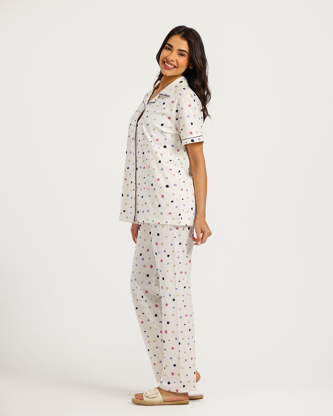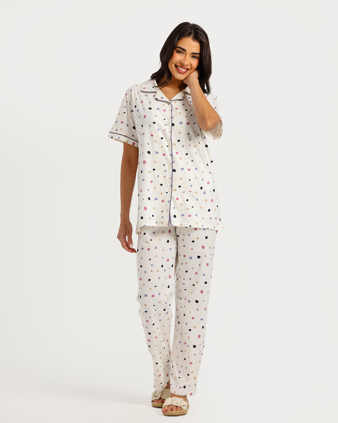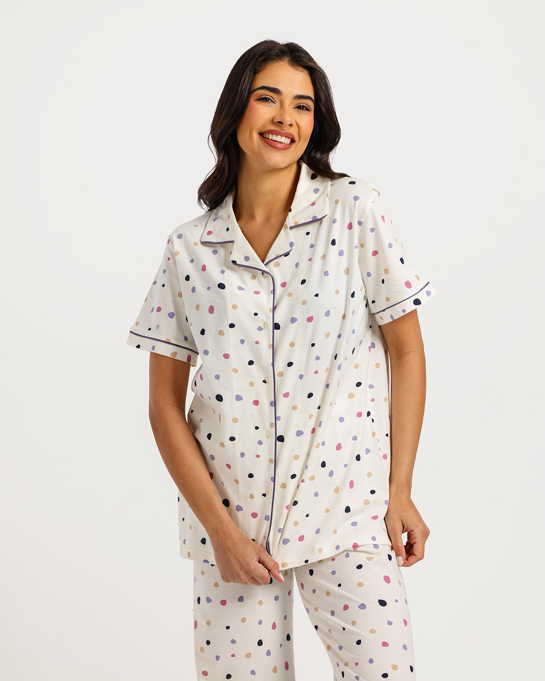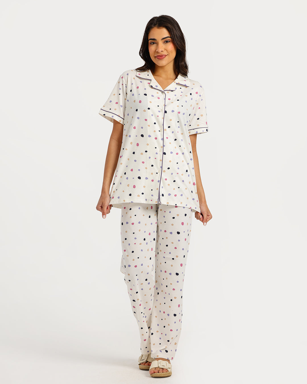 بيجامة حريمي نص كم مع بنطلون