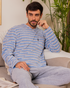 Men's Striped V-Neck Button Down Pajama Set with Chest Pocket and Plain Pants