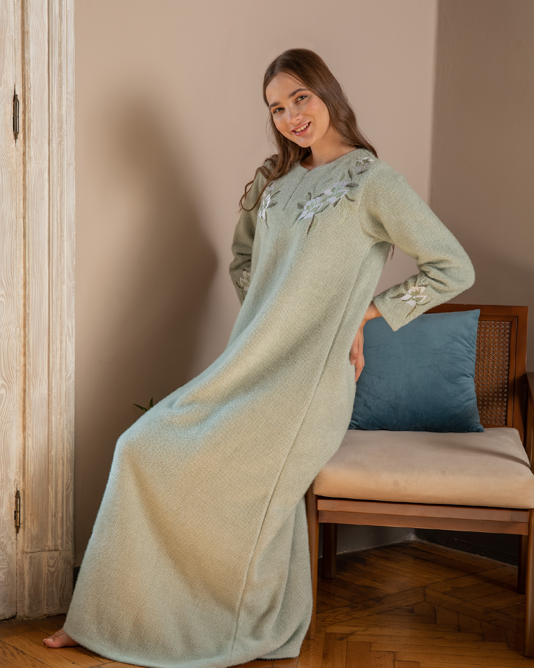 Women's cashmere embroidered night-shirt