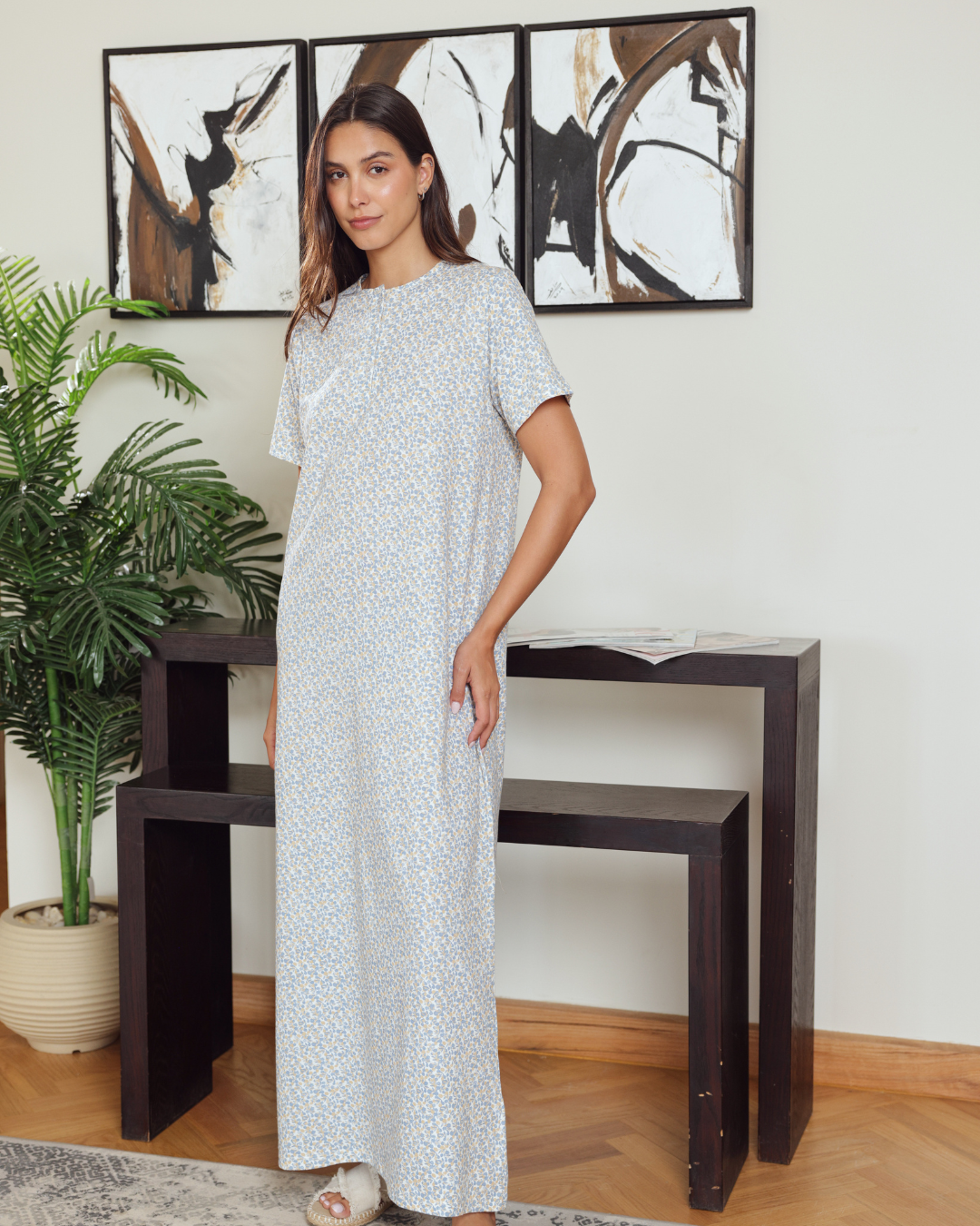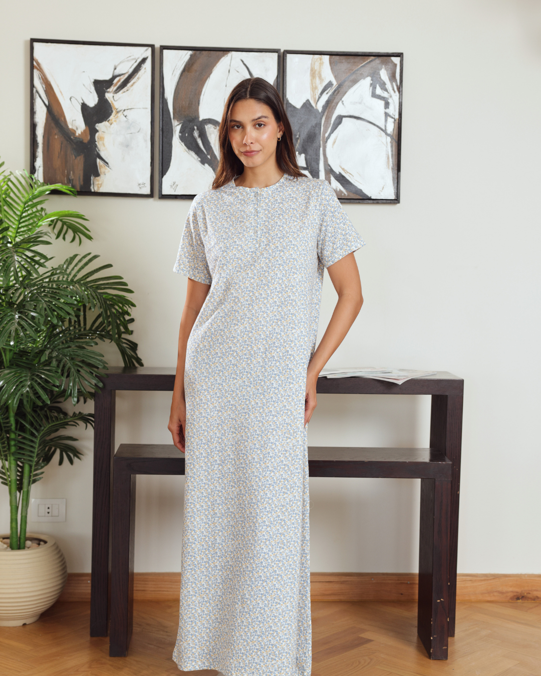Women's Round Neck Half Sleeve Printed Night Shirt
