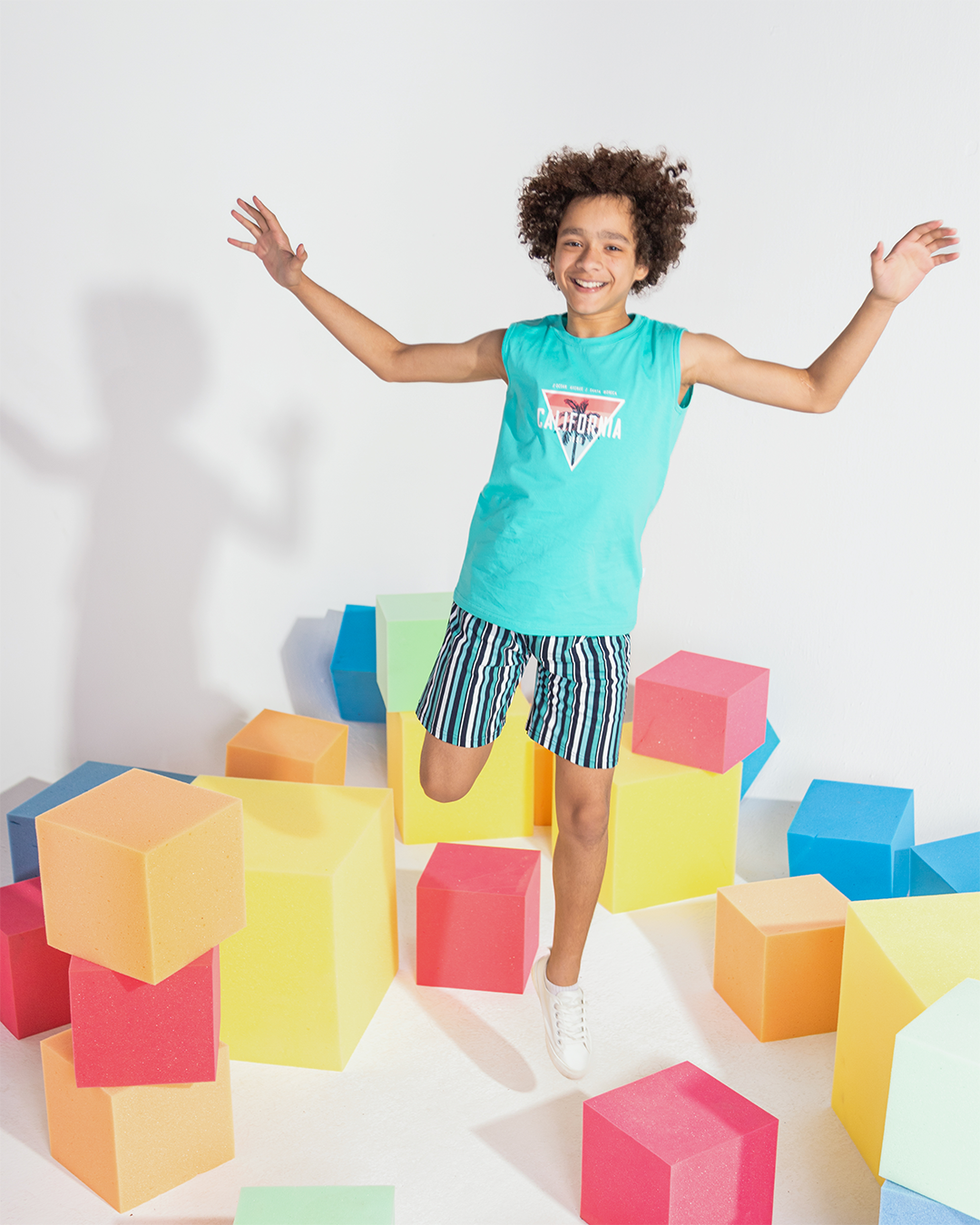 CALIFORNIA Boys Suspender Pajamas* Striped Shorts in Length