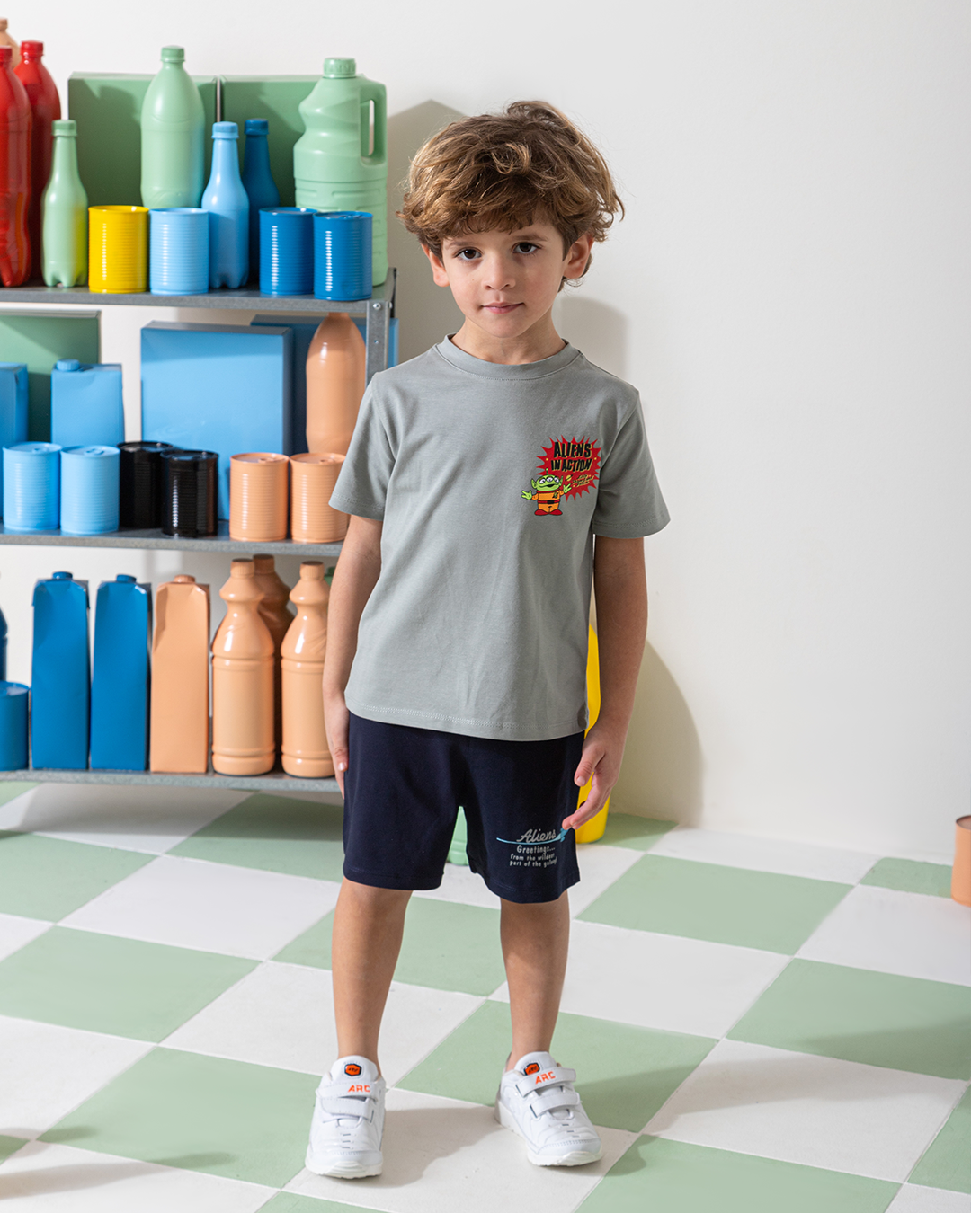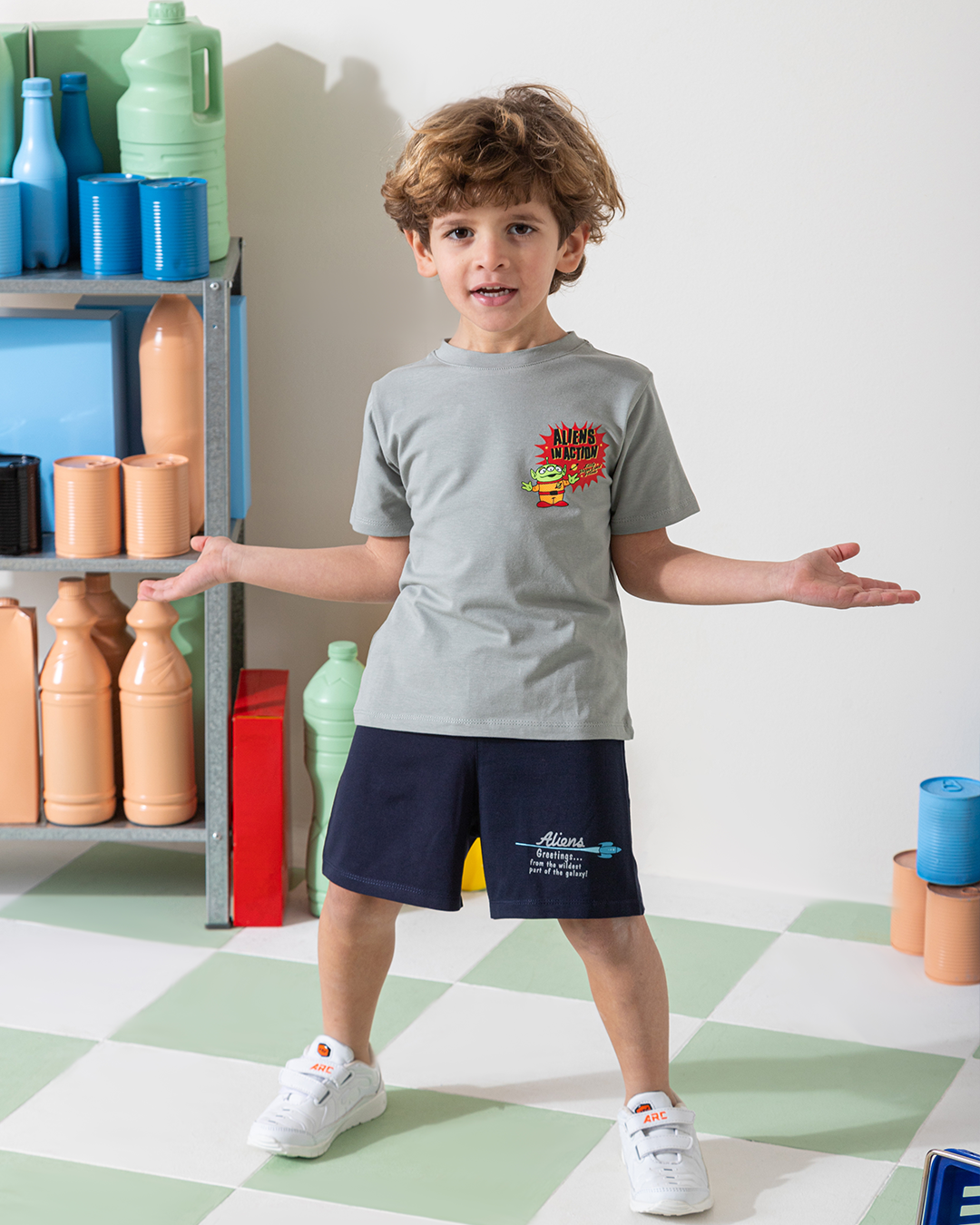 MARVY ALIENS بيجامة اولادي وسط فضي