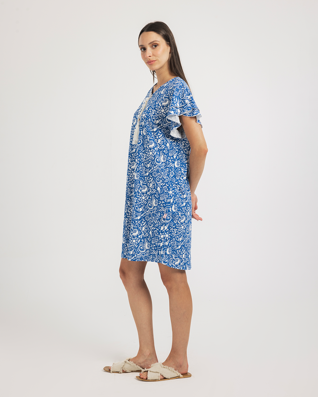 فستان ربع كم رافل قطن مودال اجواء البحر