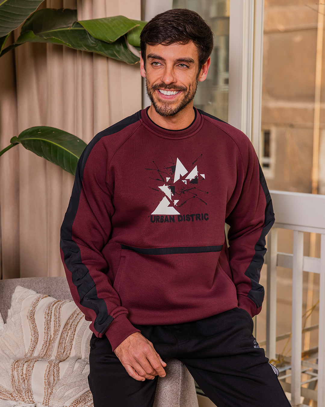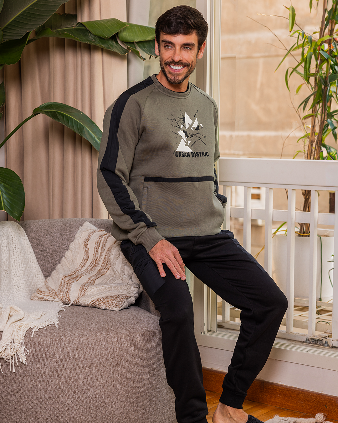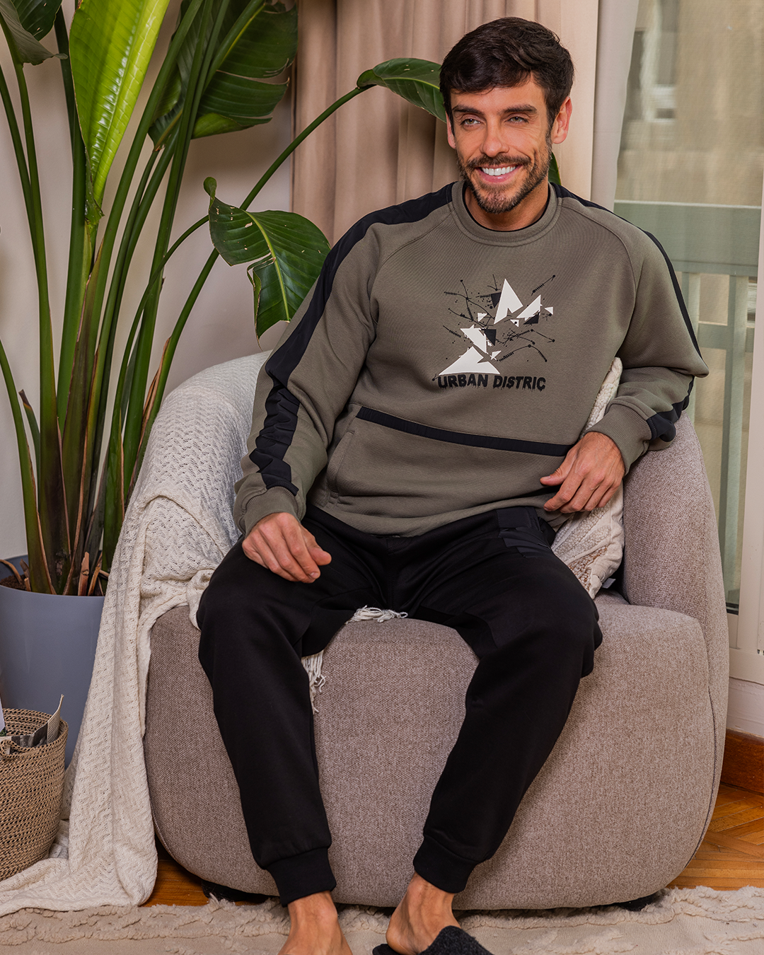 URBAN DISTRIC Men's Round Neck Pajamas with Chest Print