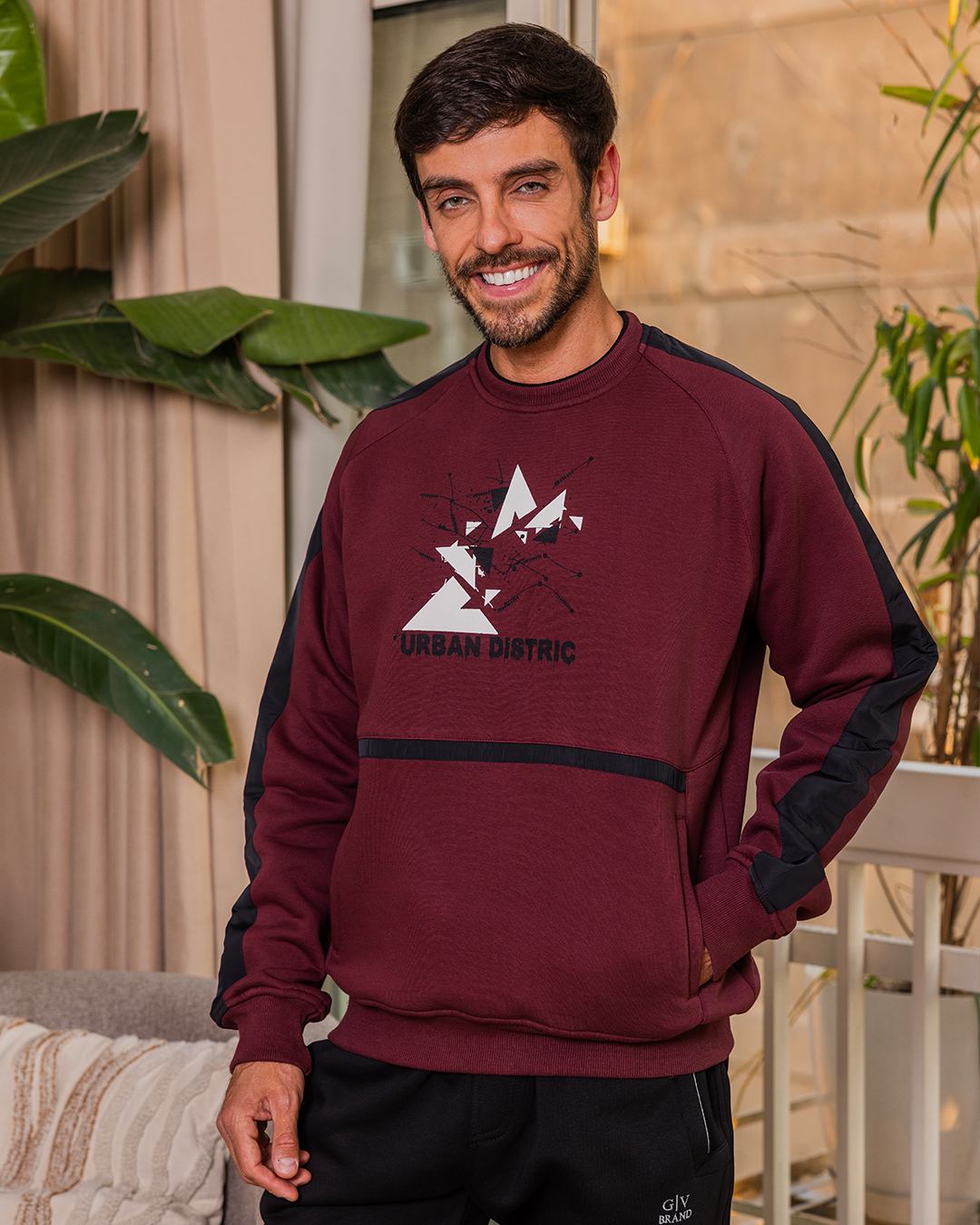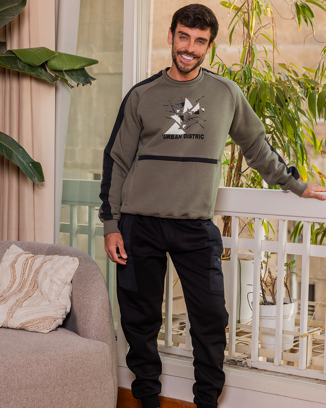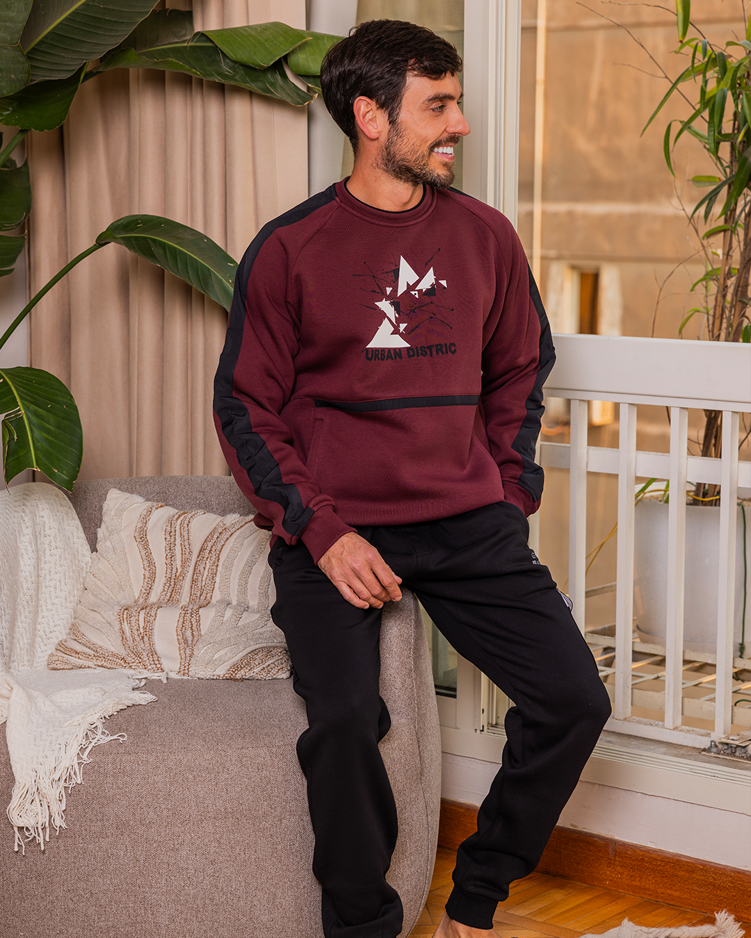 URBAN DISTRIC Men's Round Neck Pajamas with Chest Print