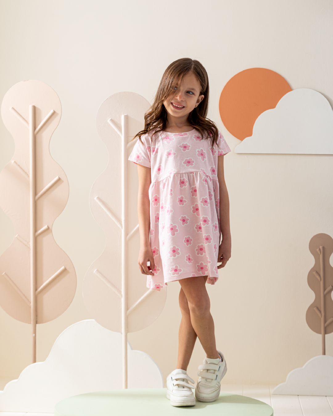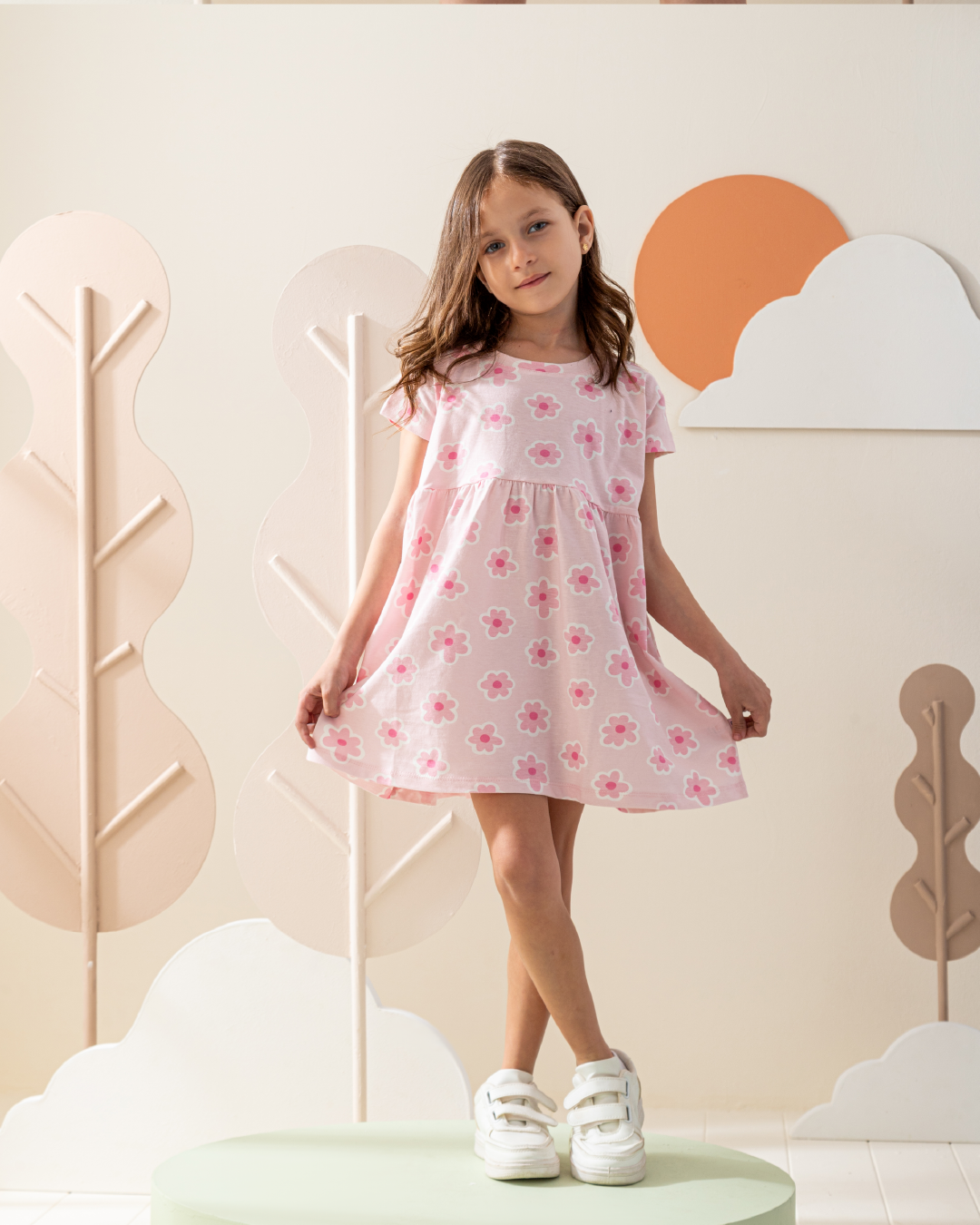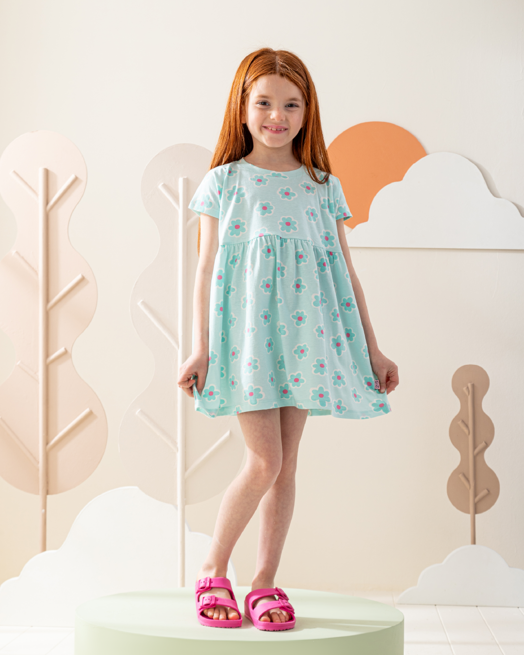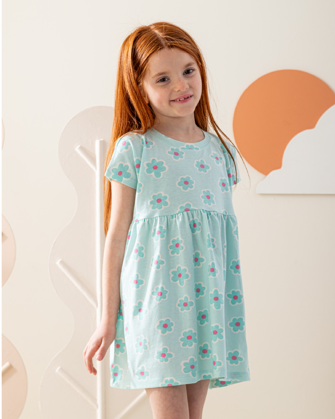 فستان كتف ساقط قطن ورود كبيره