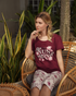 Women's half-sleeve pajamas with the big rose pentacore