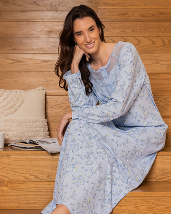 Women's long shirt with lace on the shoulder, rhubarb, long sleeve, floral print