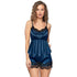 Women's satin pajamas with lace strap on the chest and lace shorts