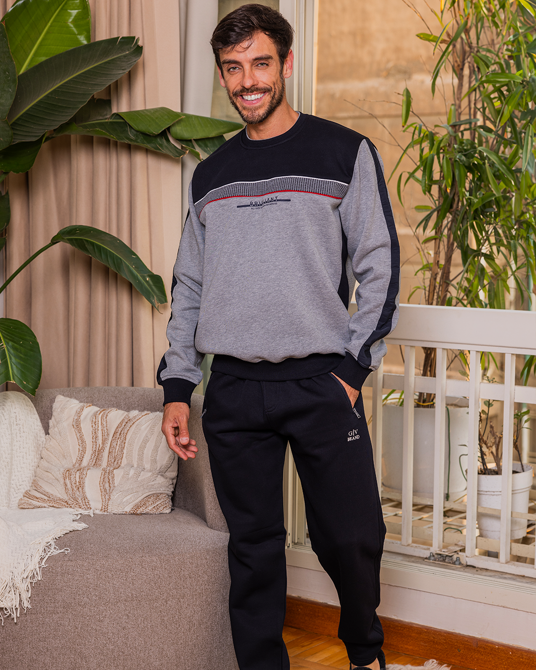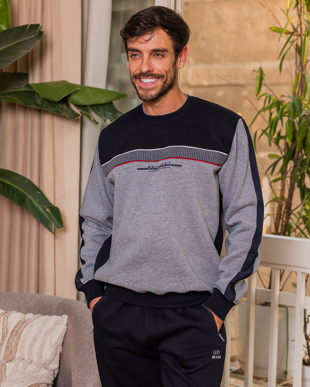 BRILLIANT Men's Round Neck Pajamas with Chest Print