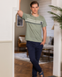 BURDA 26 Men's pajamas, long pants, half-sleeve T-shirt, embroidered stripes on the chest