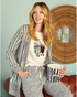COFFE Women's pajamas, open longitudinal striped jacket and a T-shirt on the chest