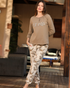 LOVE Women's pajamas, short sleeve buttoned T-shirt and floral print trousers