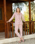 Pink Leaves Women's pajamas with long sleeve buttons and cotton velor pants