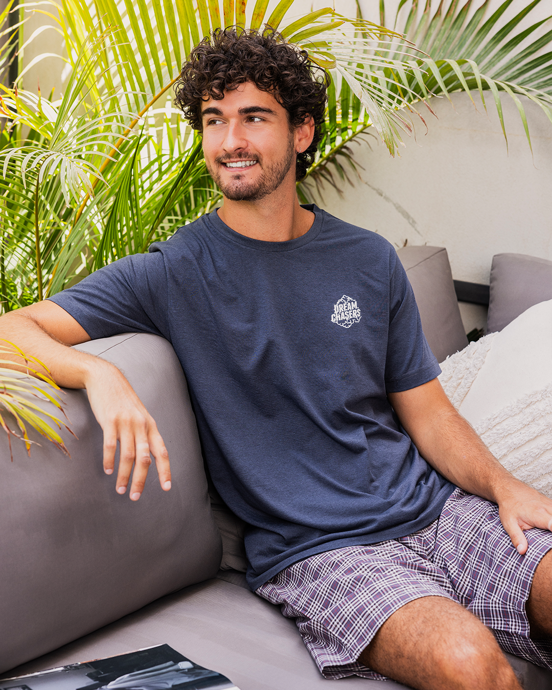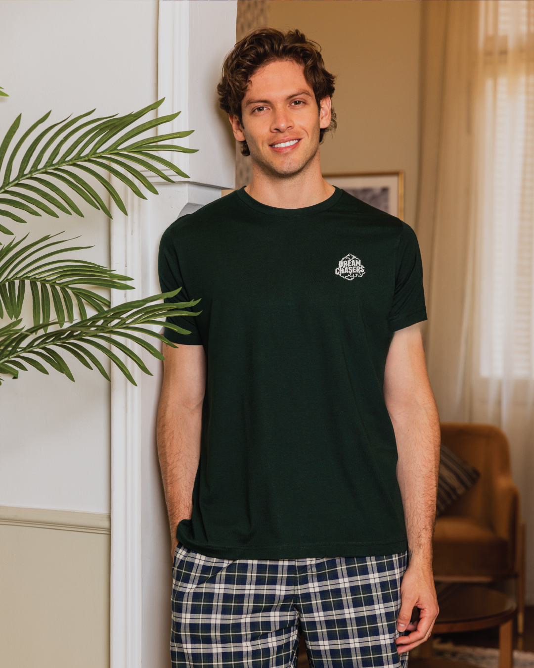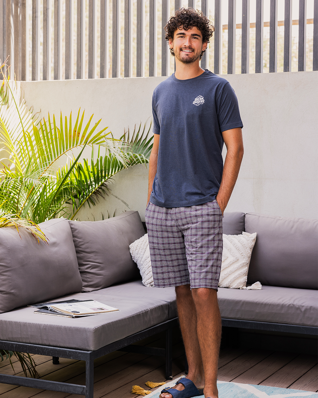 السادة Xبيجامه رجالي تيشرت نص كم رواند وشورت النسيج الكاروة