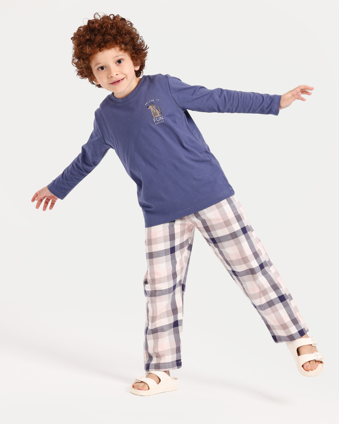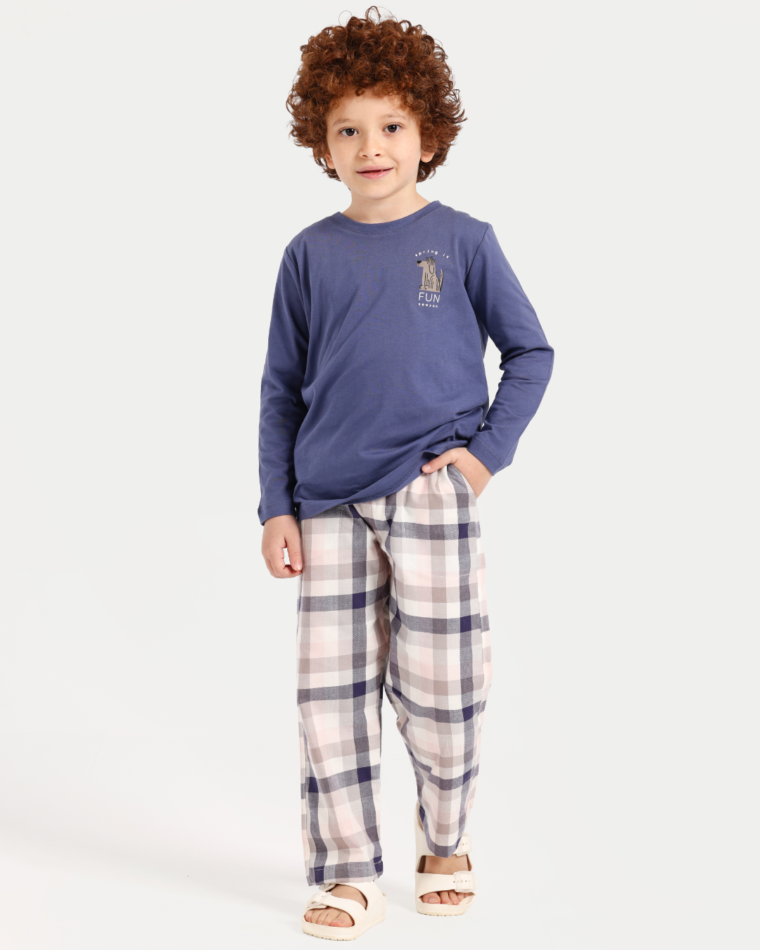 بيجاما أولادي كم طويل كاروهات الربيع