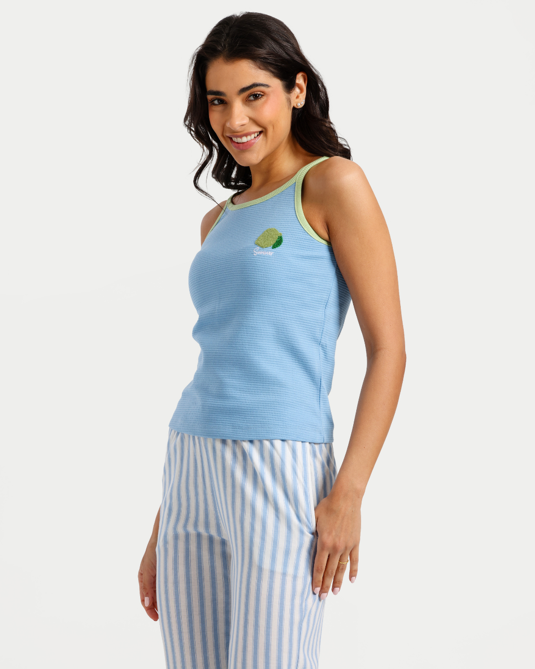 بيجاما الأم الأنيقة بالأزرق الزاهي