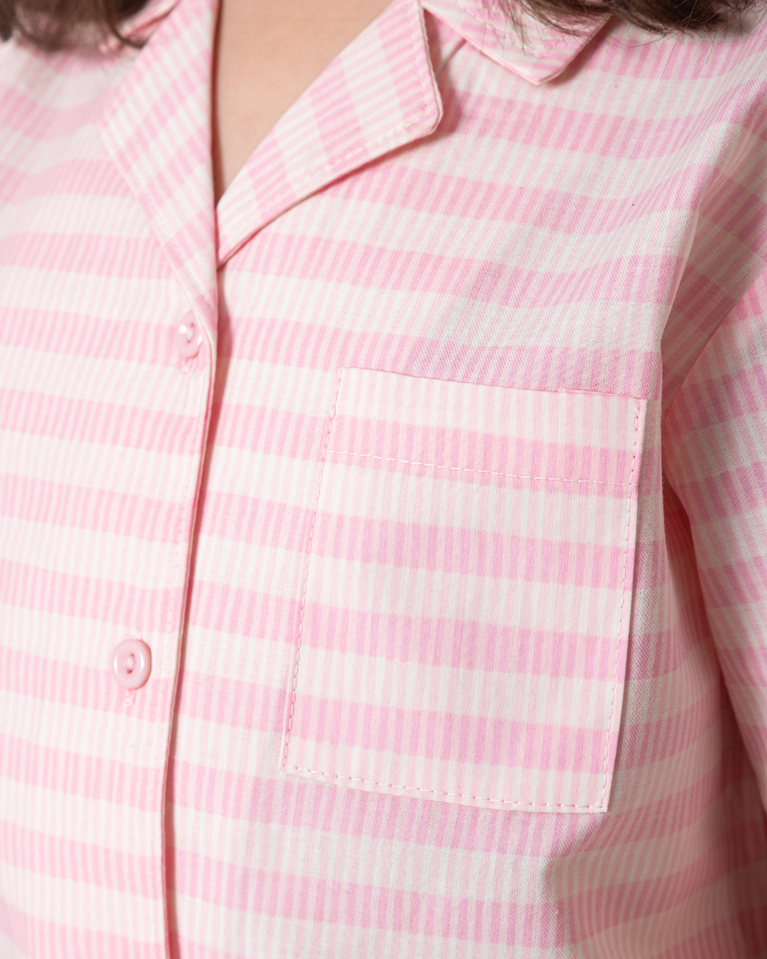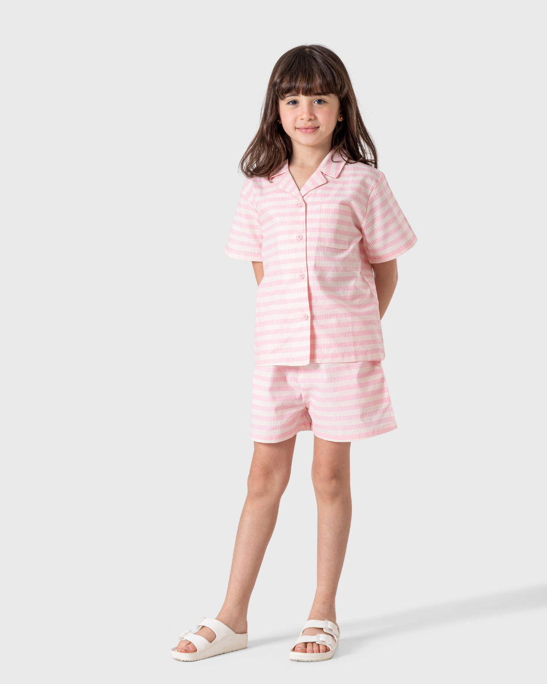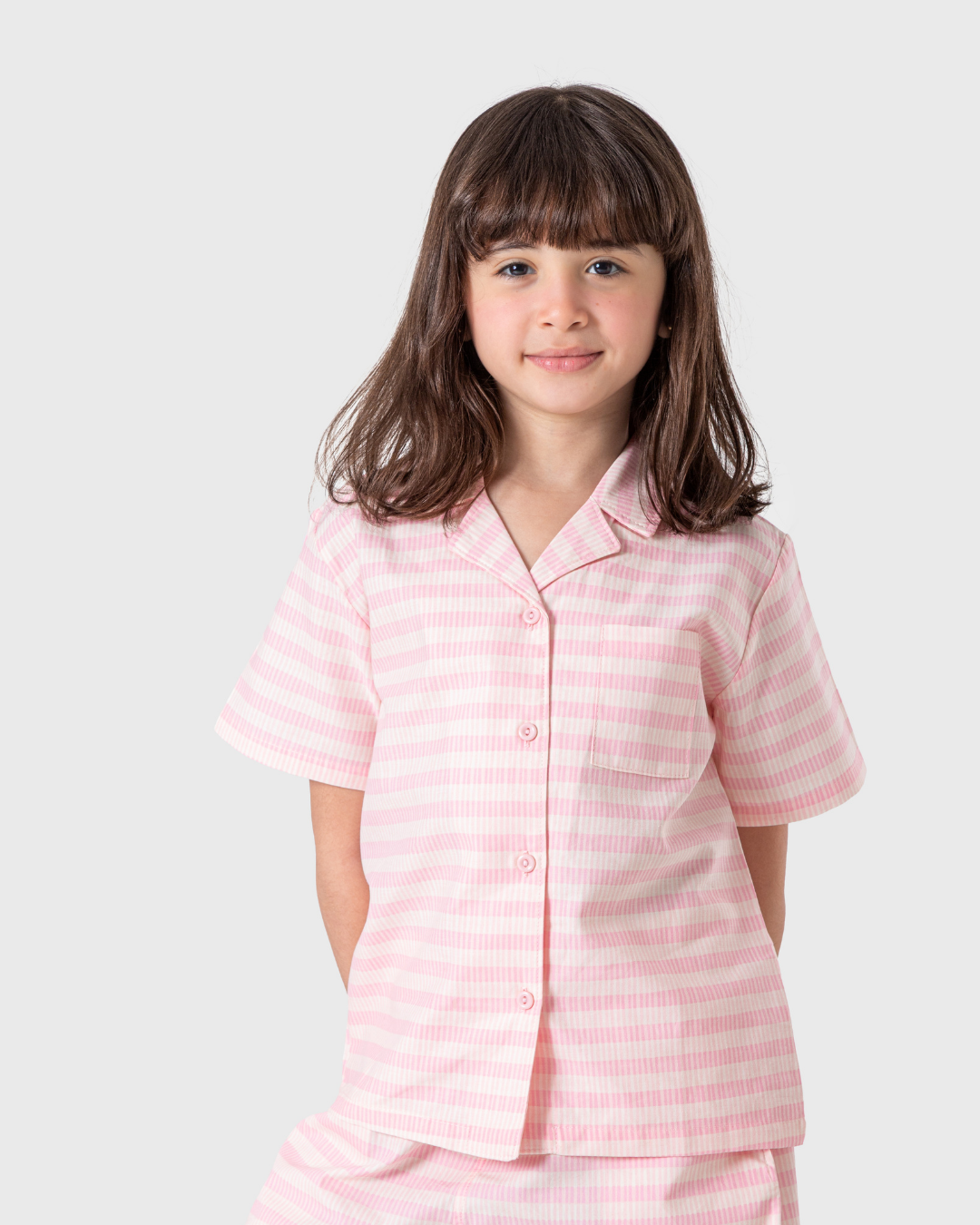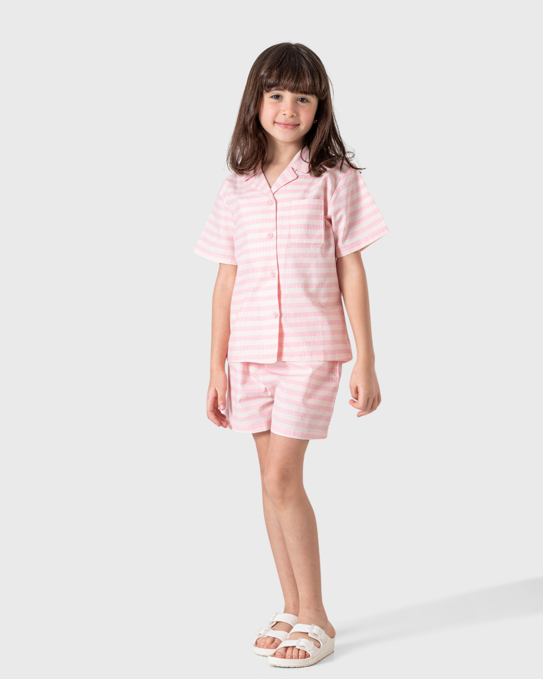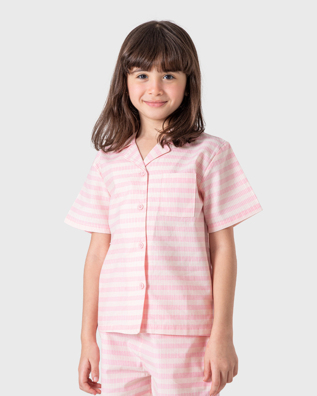 بيجاما بناتي كلاسيكية مخططة بالوردي