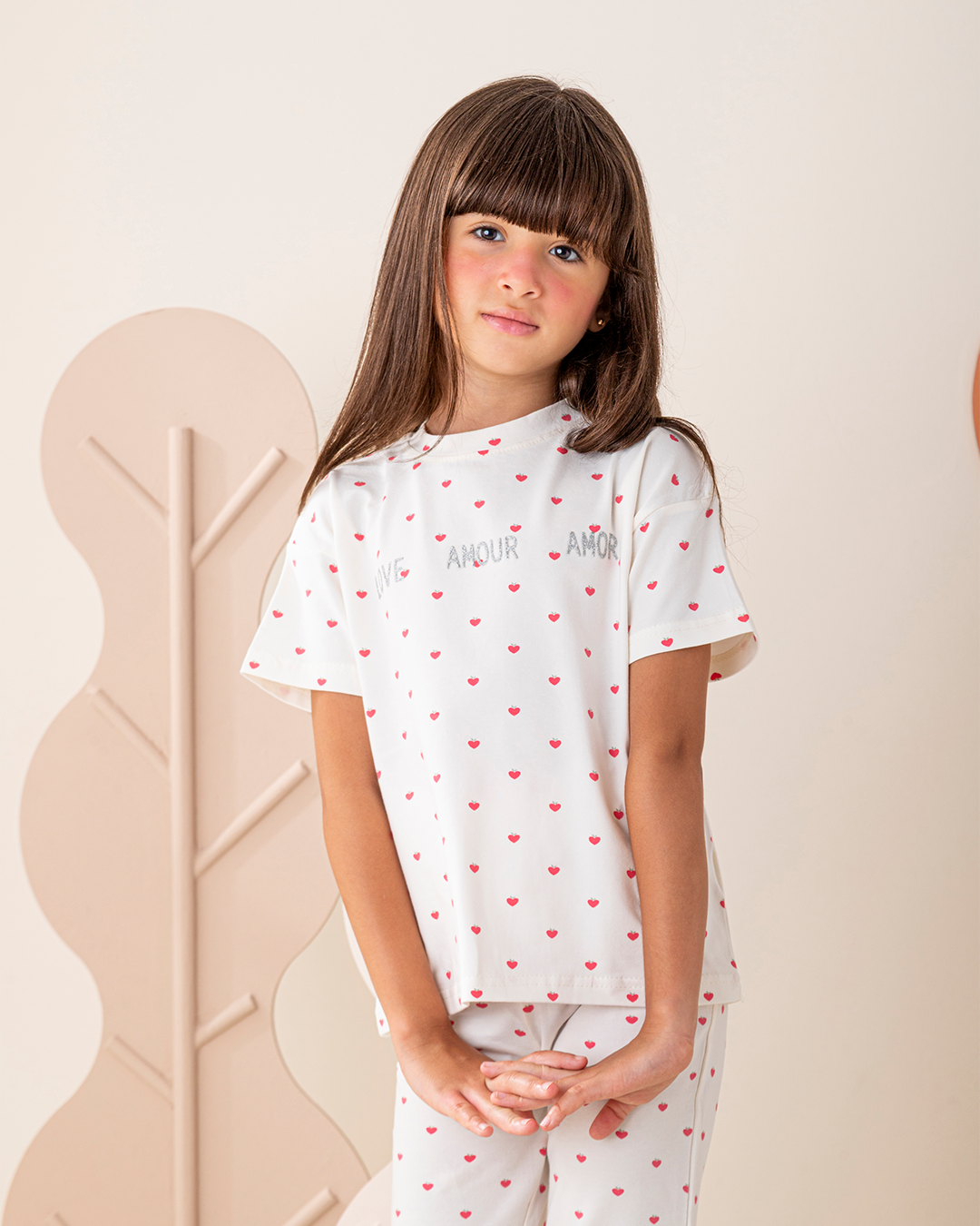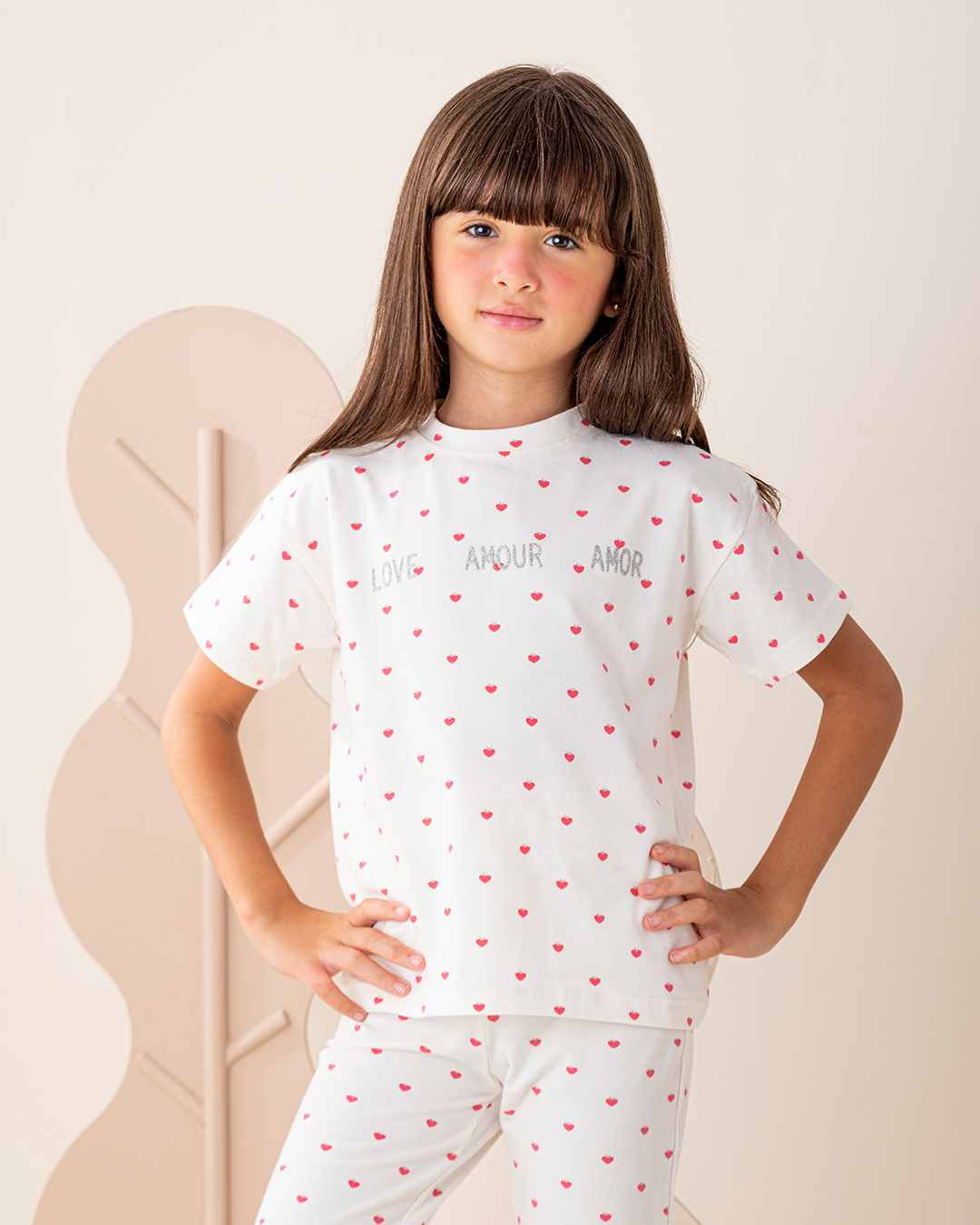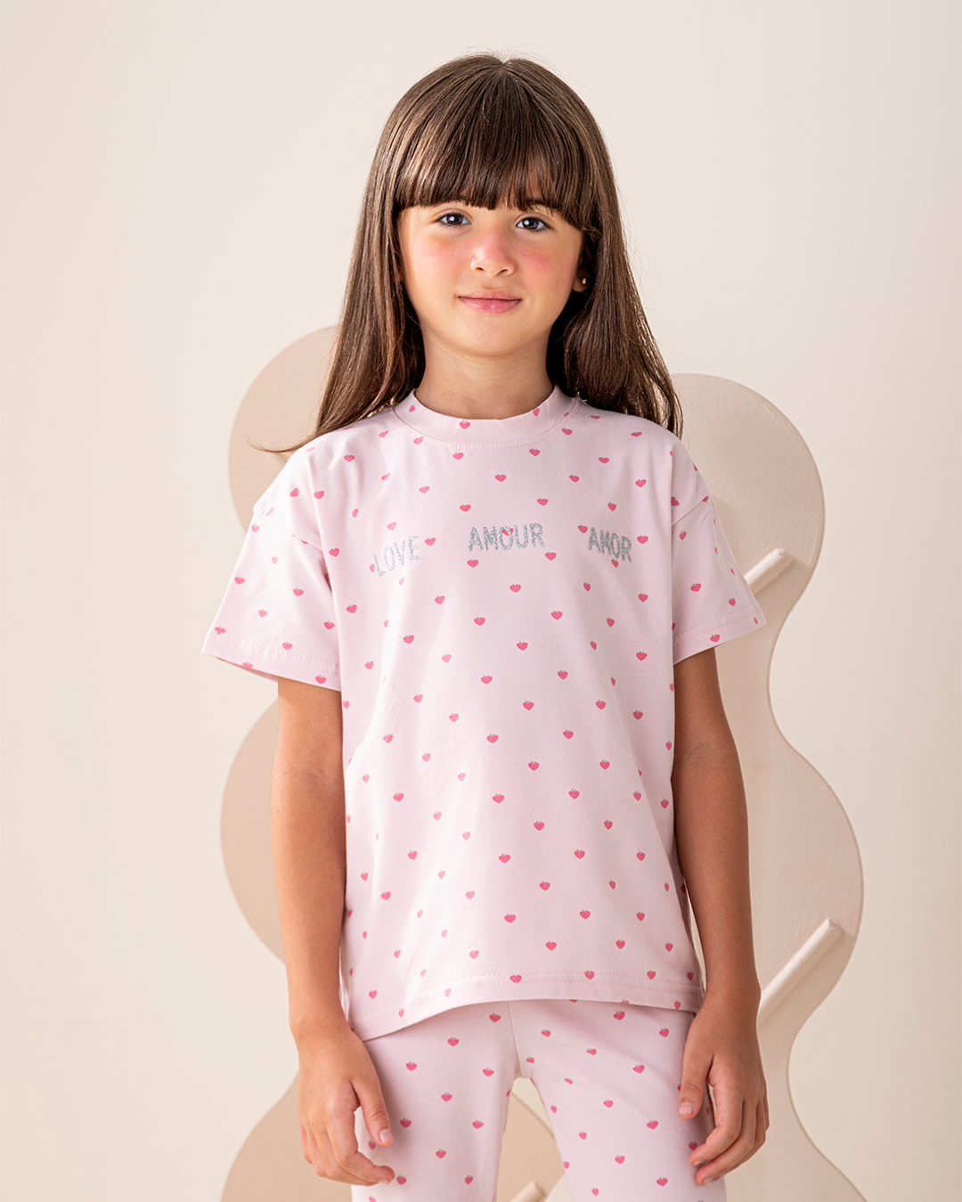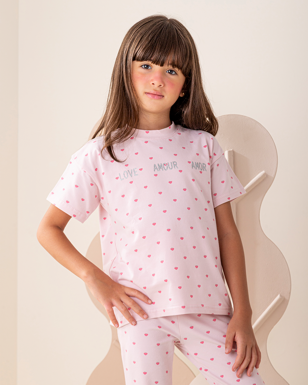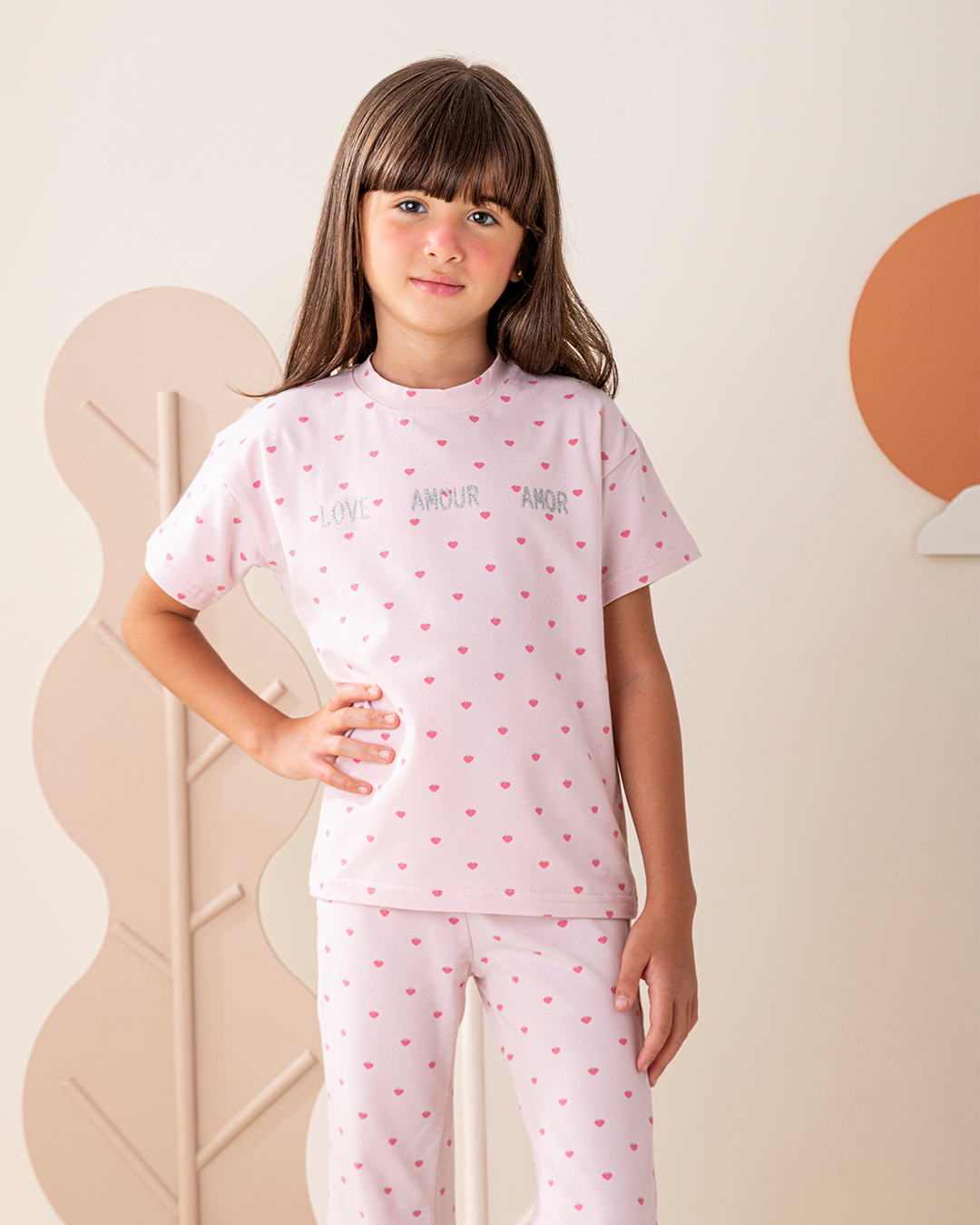 بيجاما بنطلون قطن كتف ساقط قلوب صغيره
