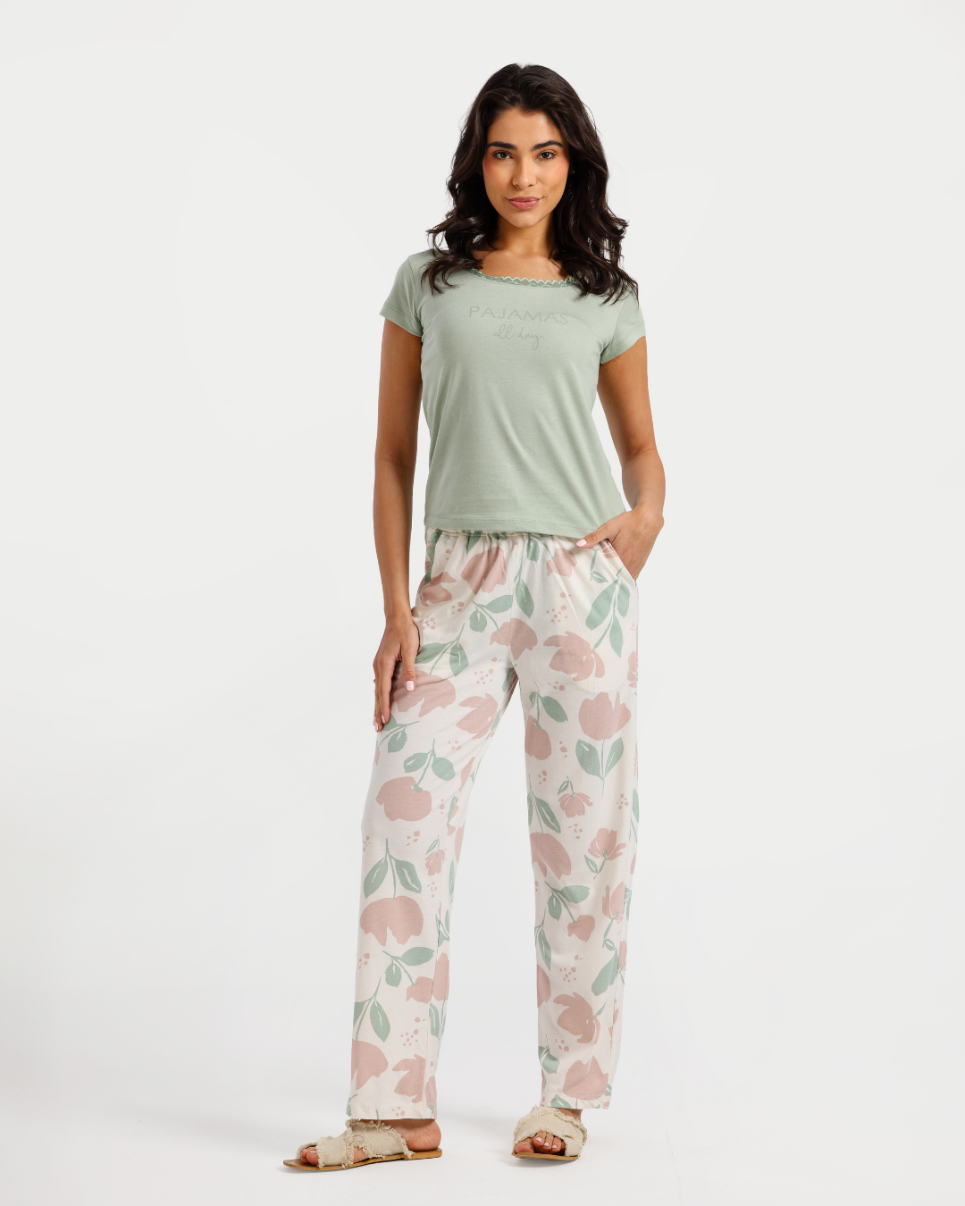 بيجاما بنطلون قطن مودال ورود كبيره