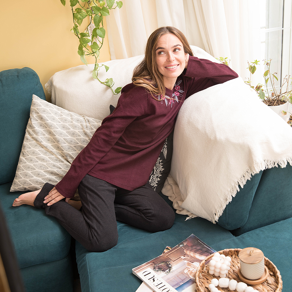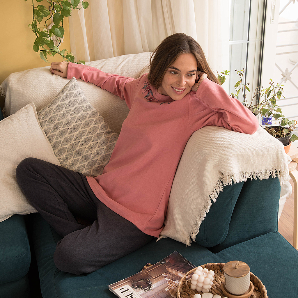 بيجاما حريمى روند مطرزة ورد ع الصدر