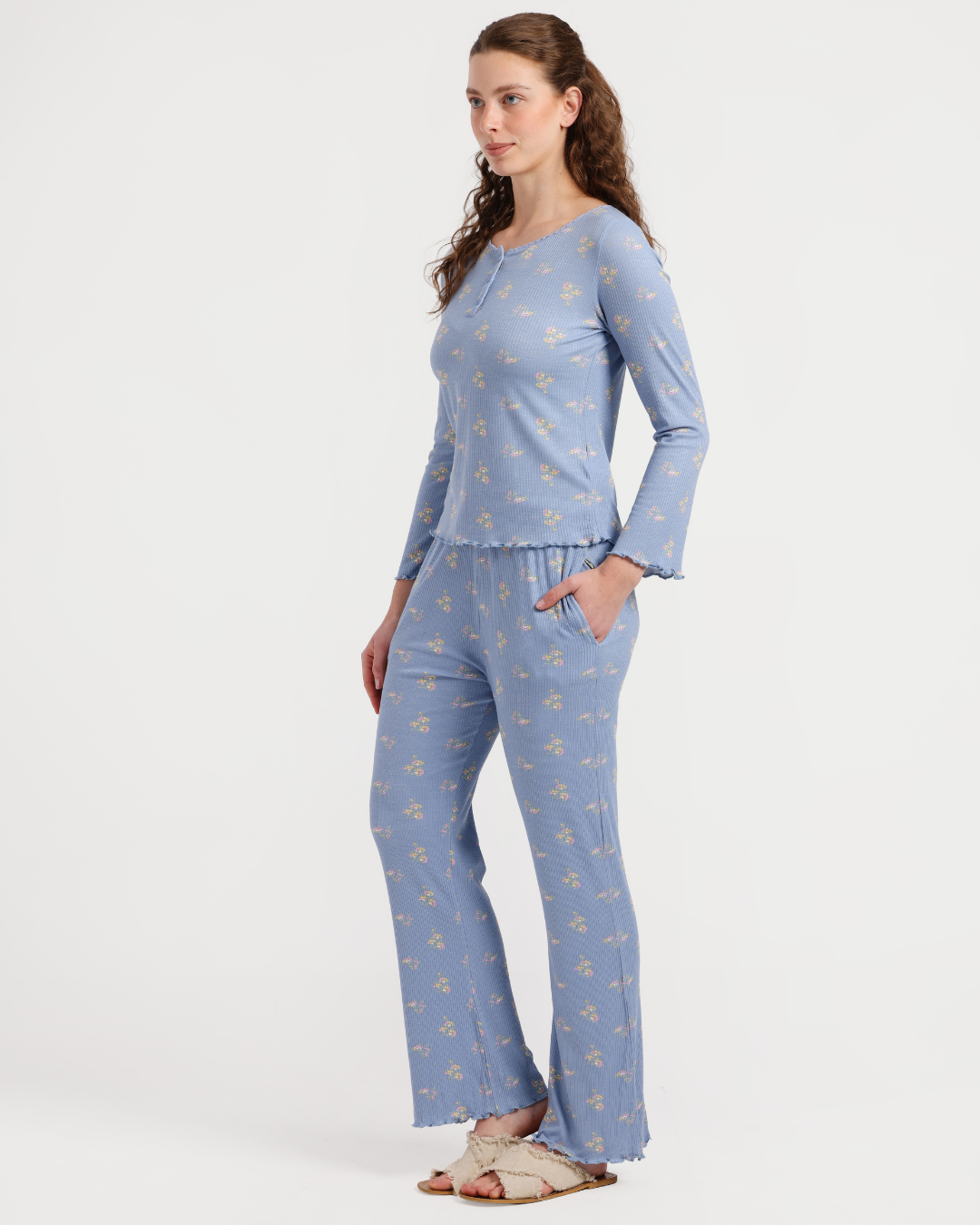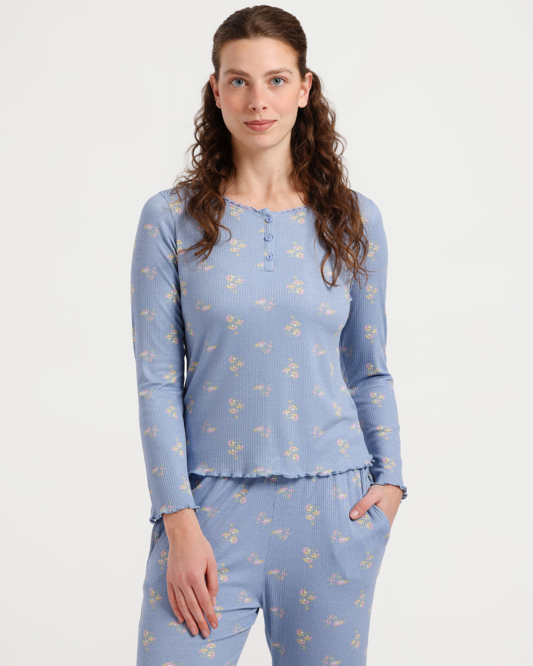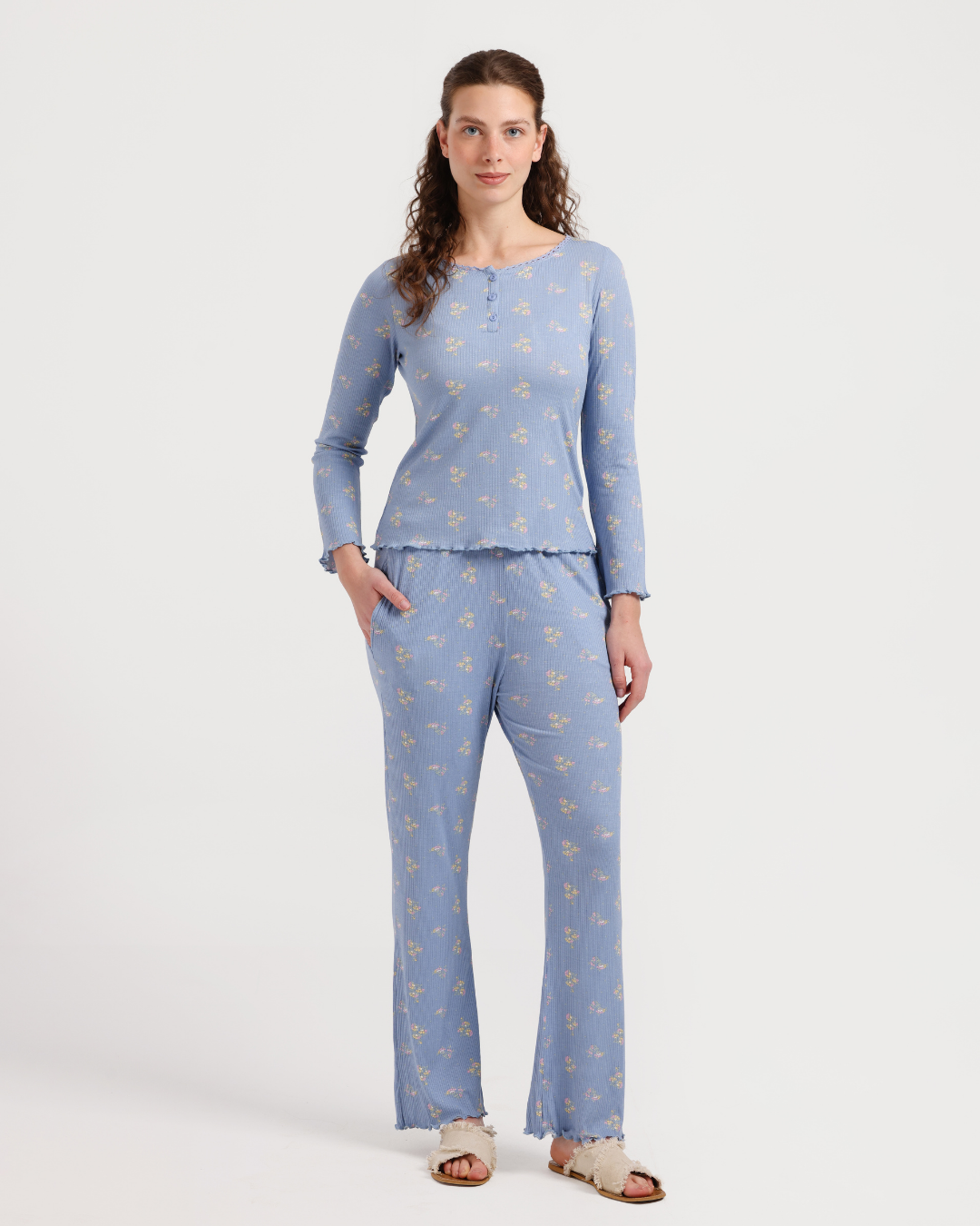 بيجاما حريمي بكم و بنطلون مطبوع ورود هندسيه صغيره