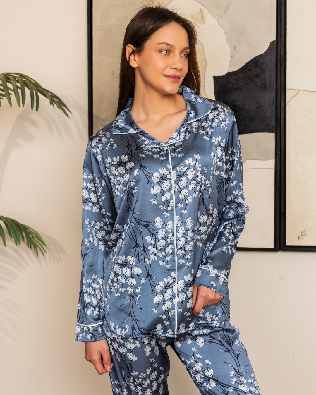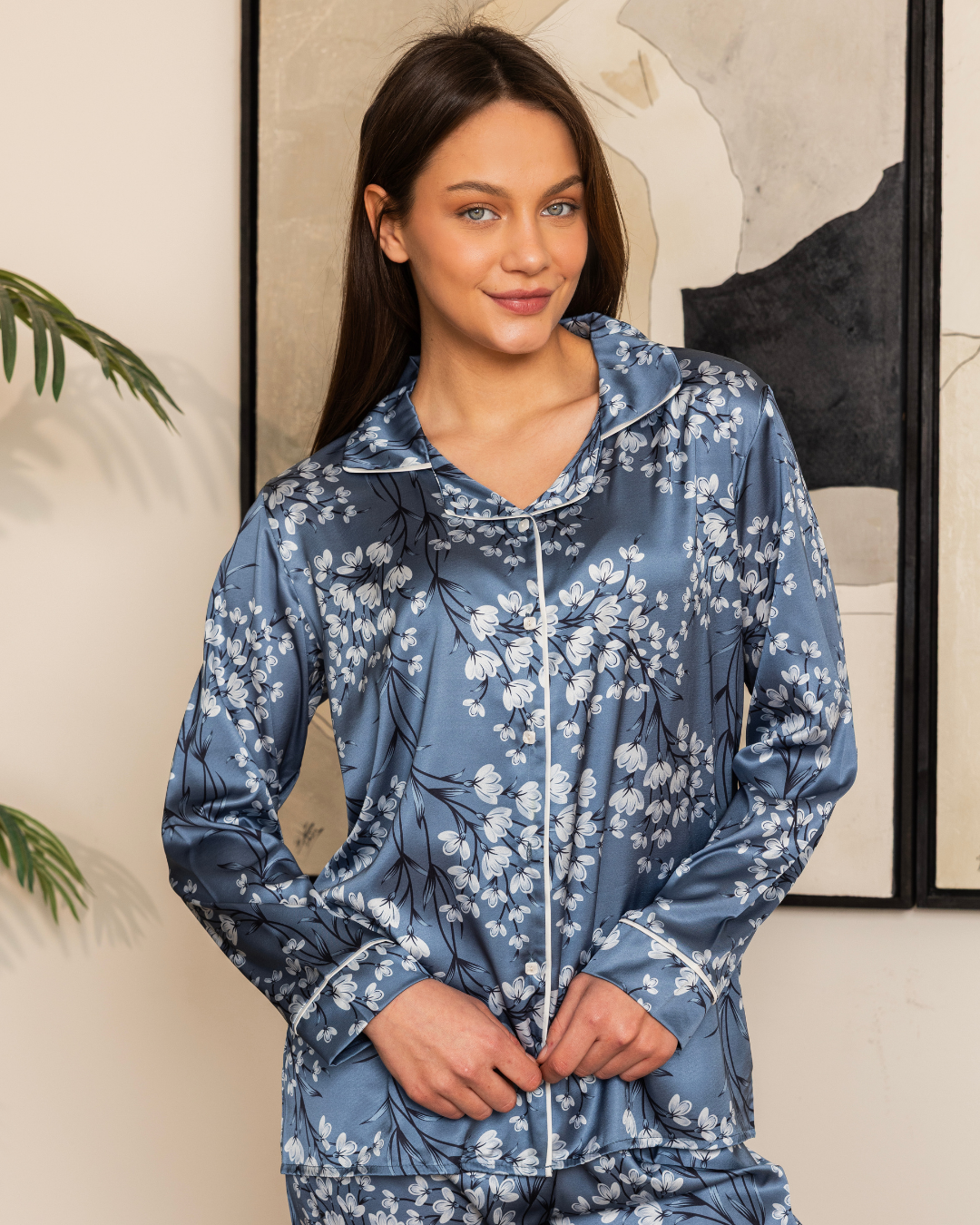 بيجاما حريمي ستان وبنطلون كلاسيك مطبوع فلة