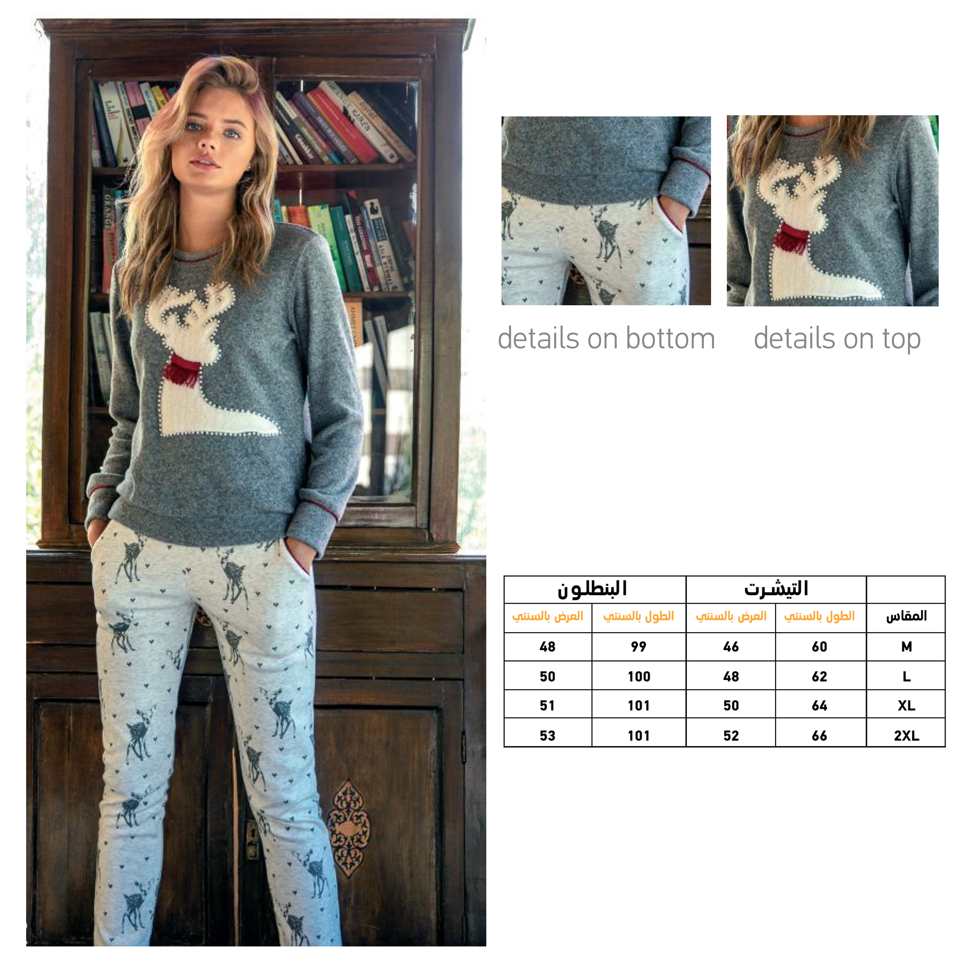 بيجاما حريمي مطرزة غزال