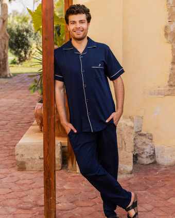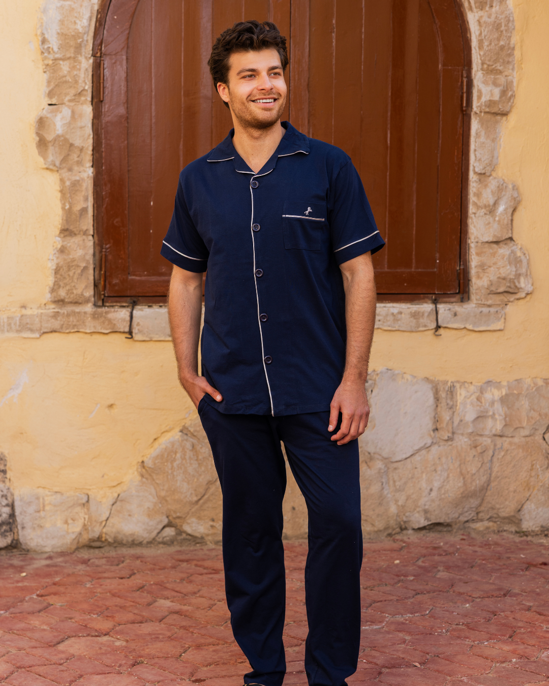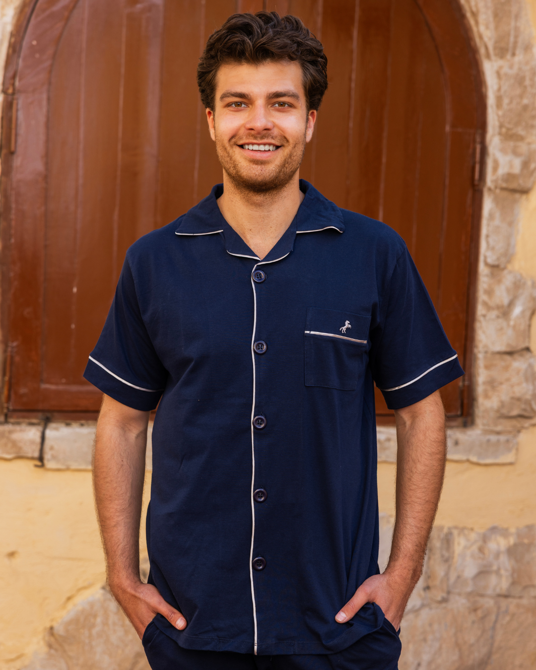 بيجاما رجالي نص كم كلاسيك مفتوحة تطريز حصان