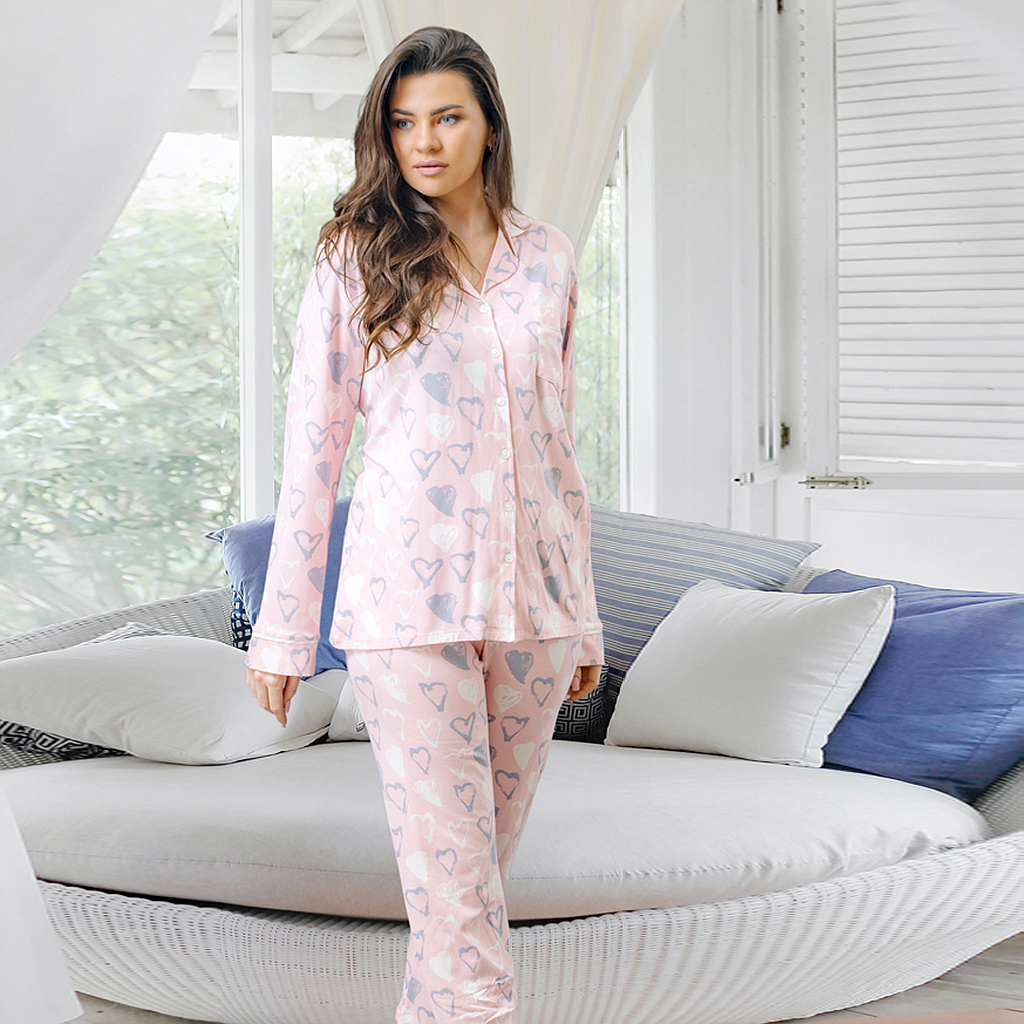 بيجاما حريمي كلاسيك قلوب بكم حريمى