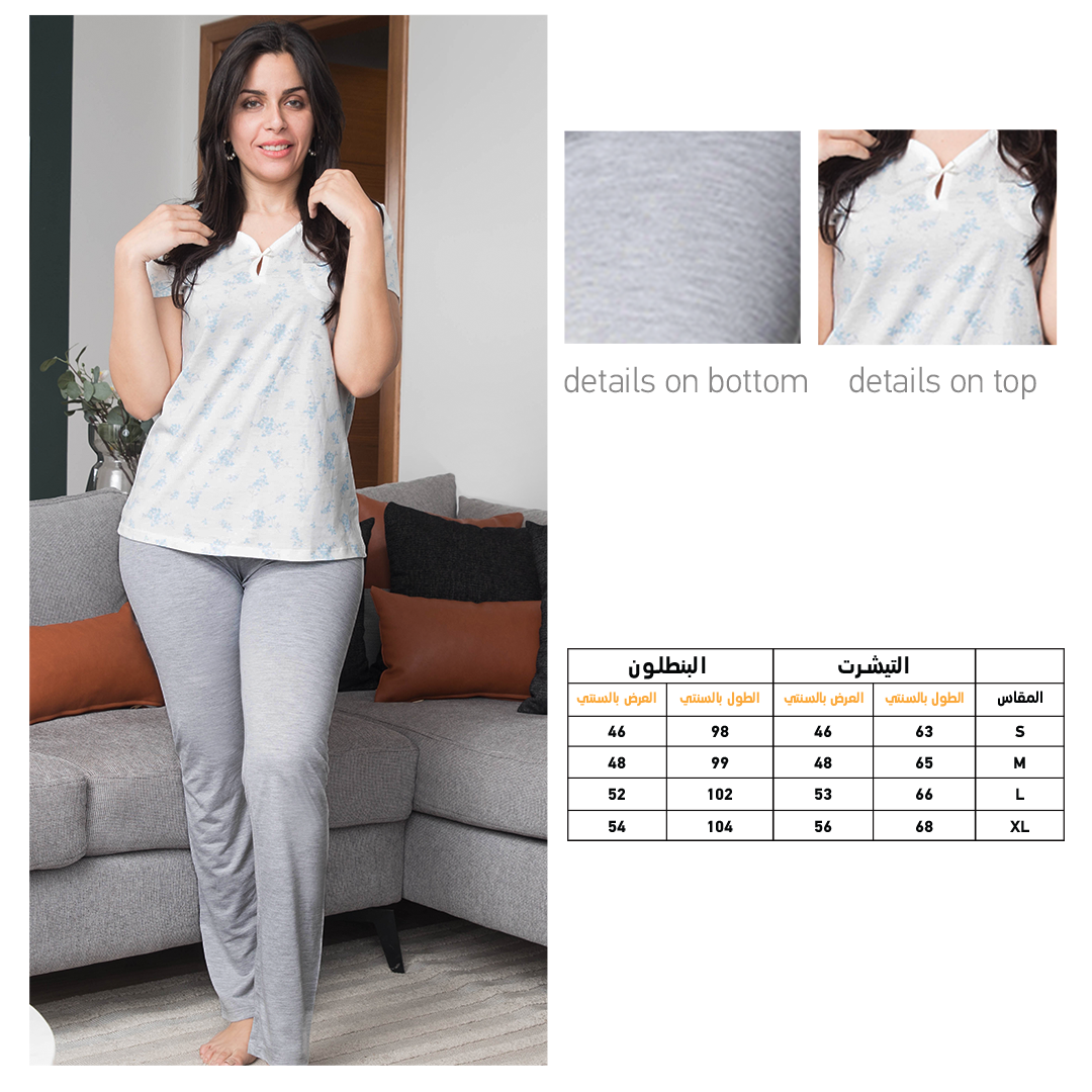 بيجاما مشجر ورد بنطلون ساده حريمي