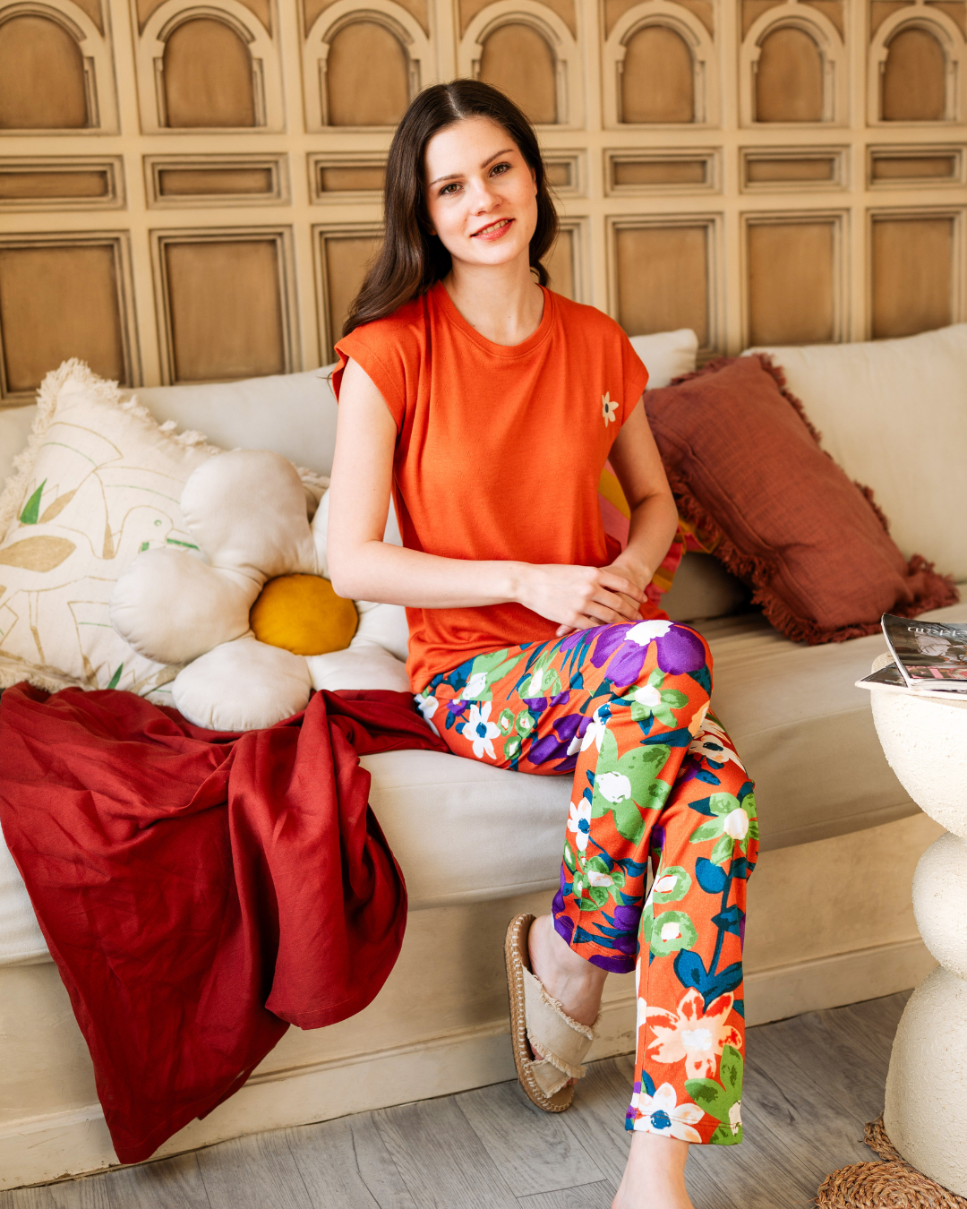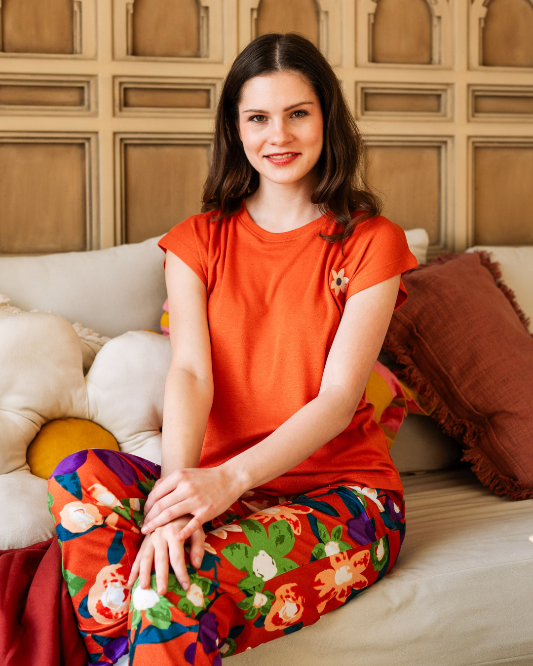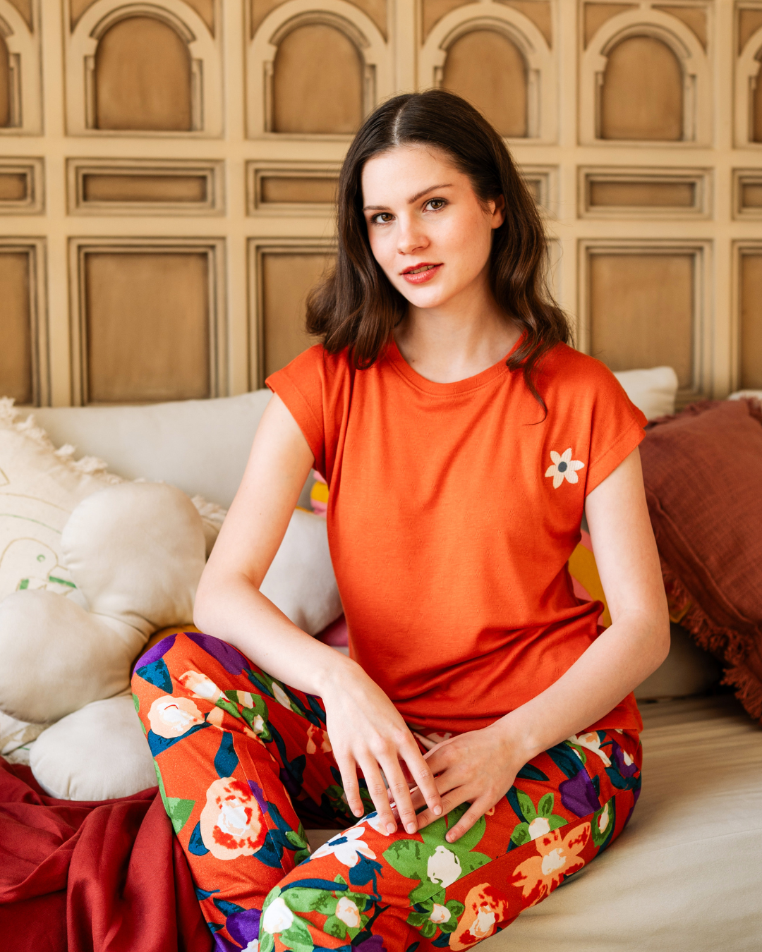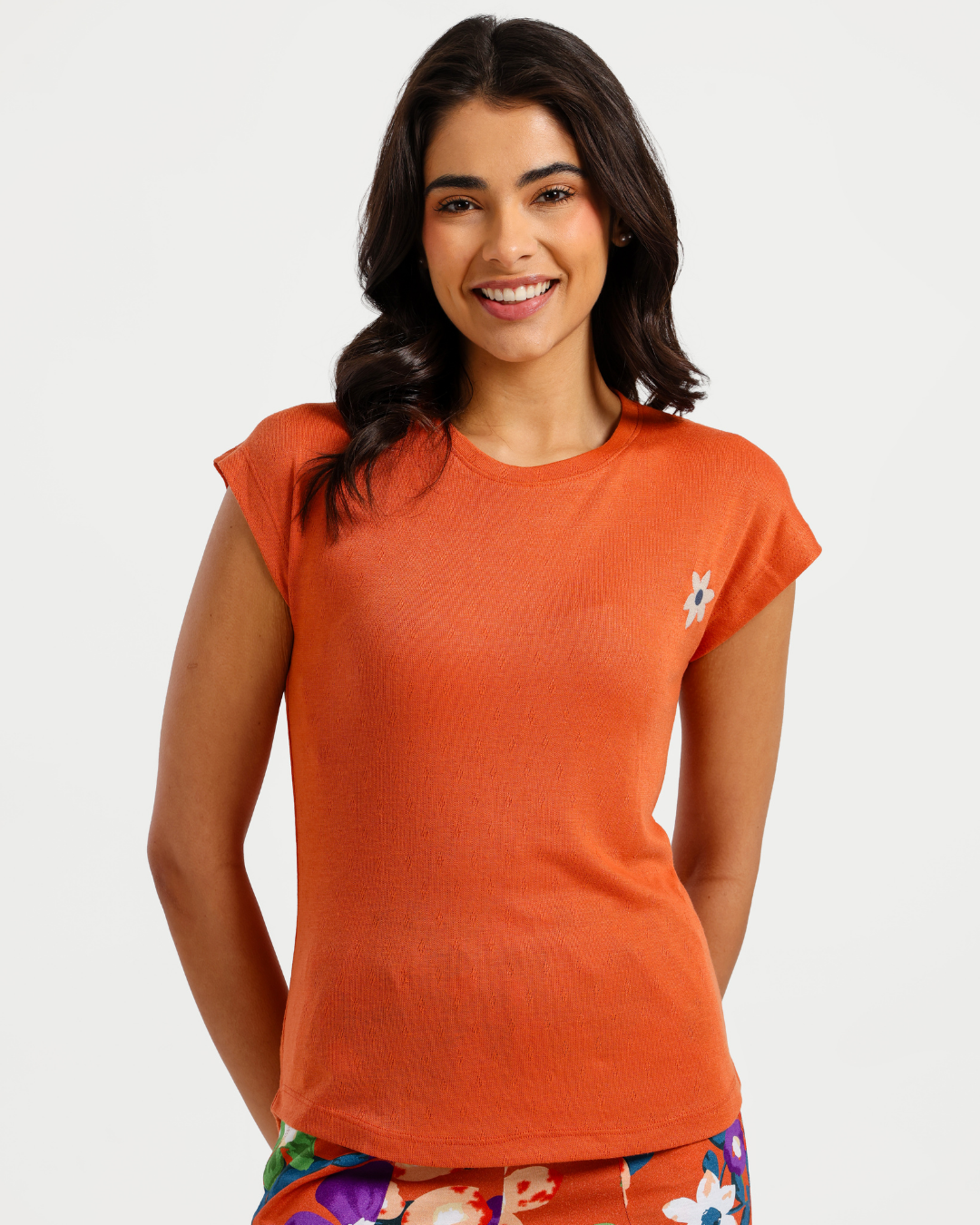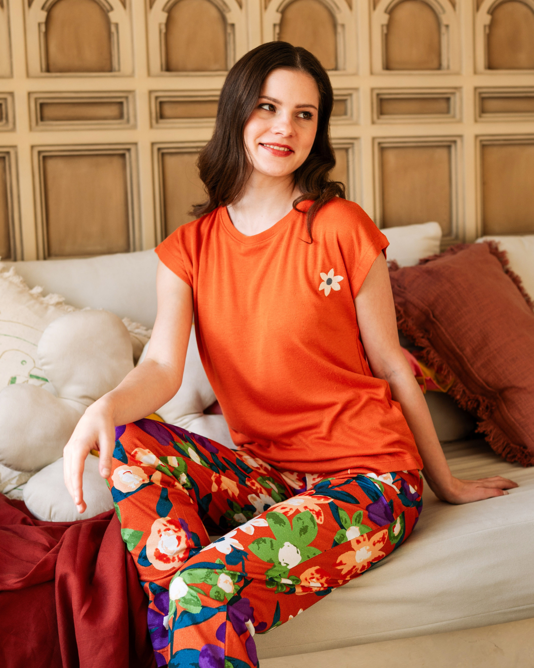 بيجاما نص كم بطبعة الورود البنفسجية