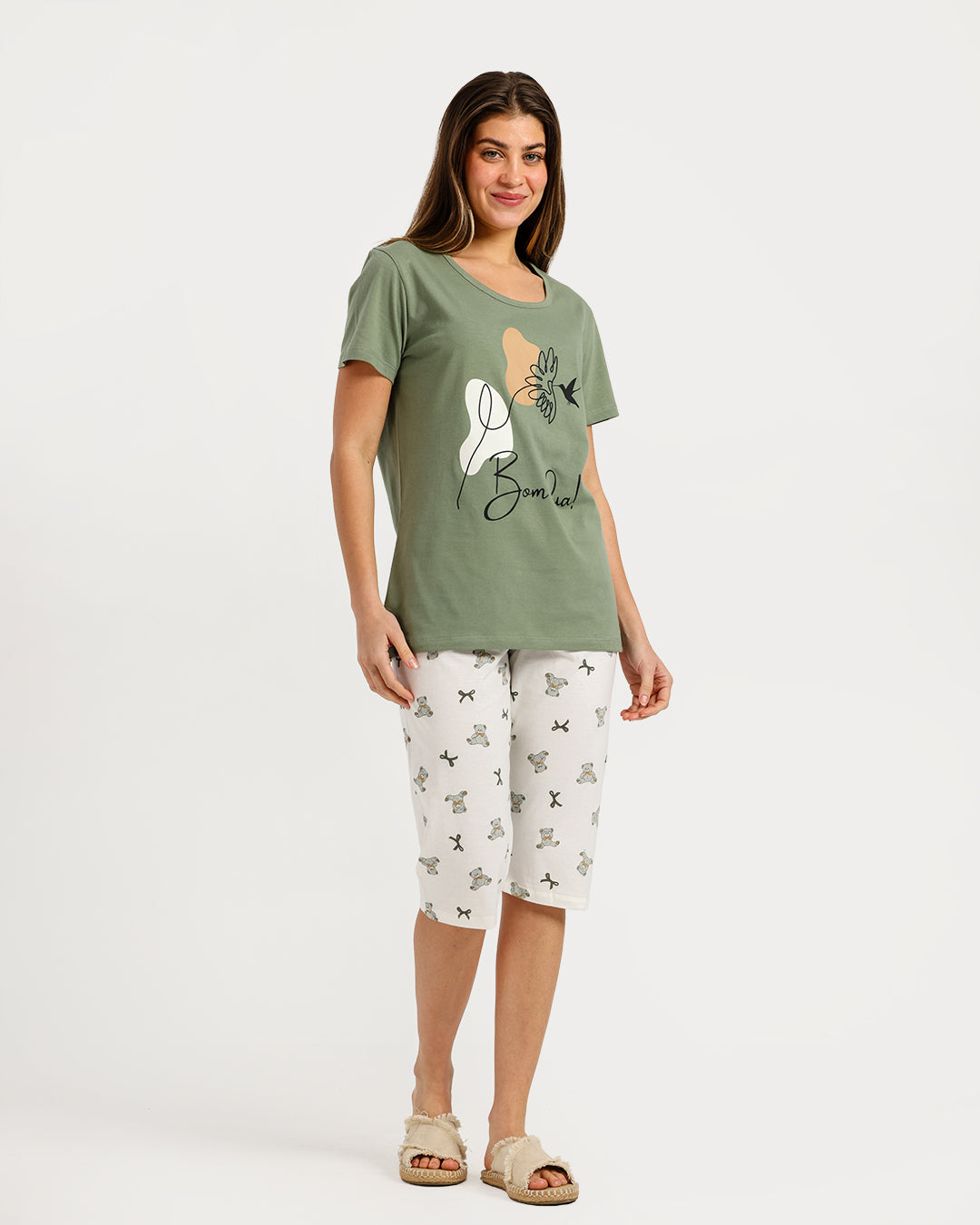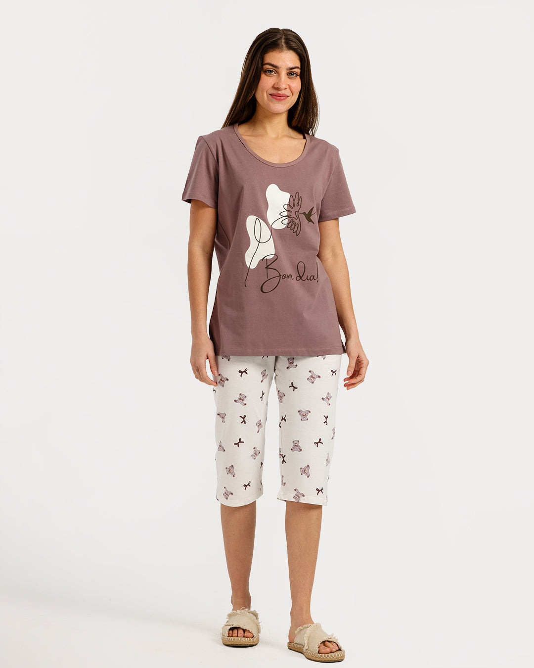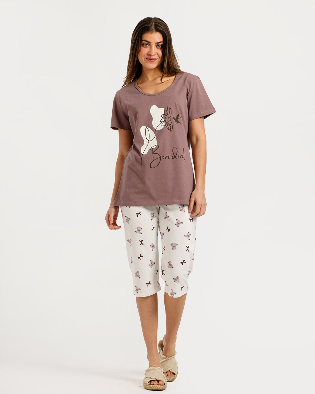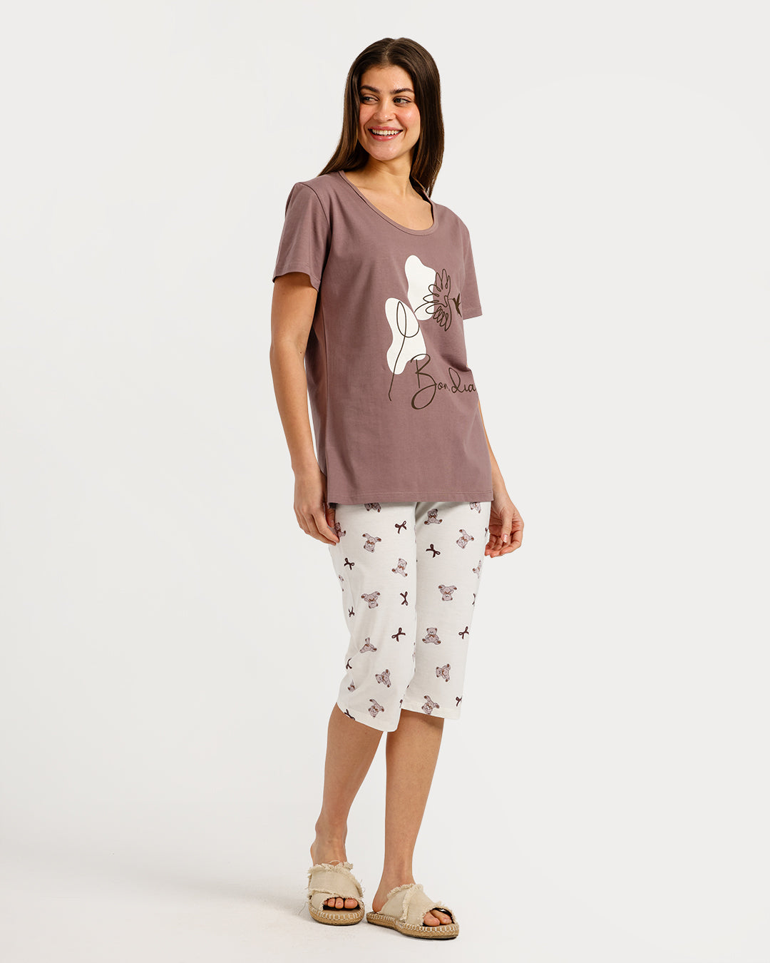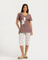 بيجامة حريمي نص كم مع بنطلون كابري