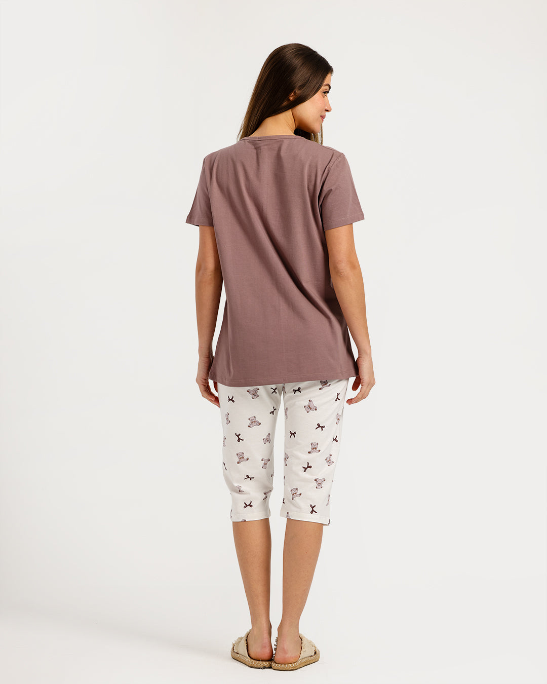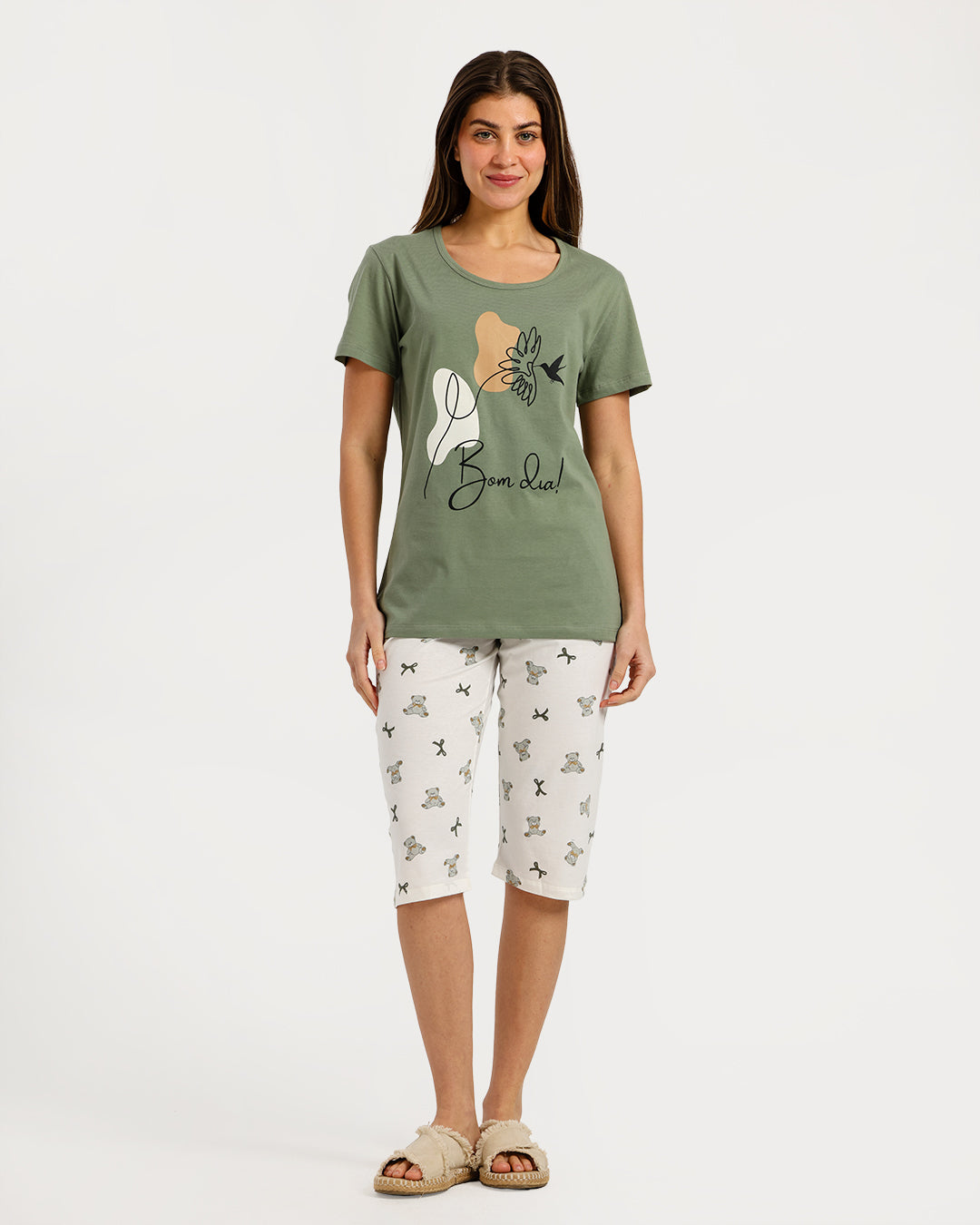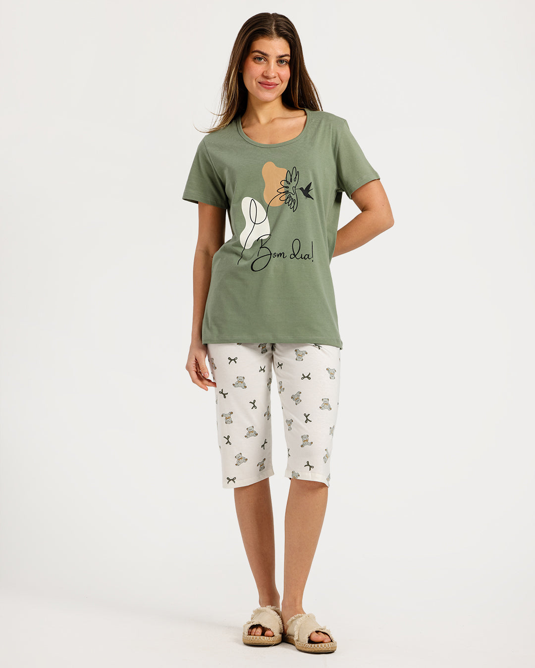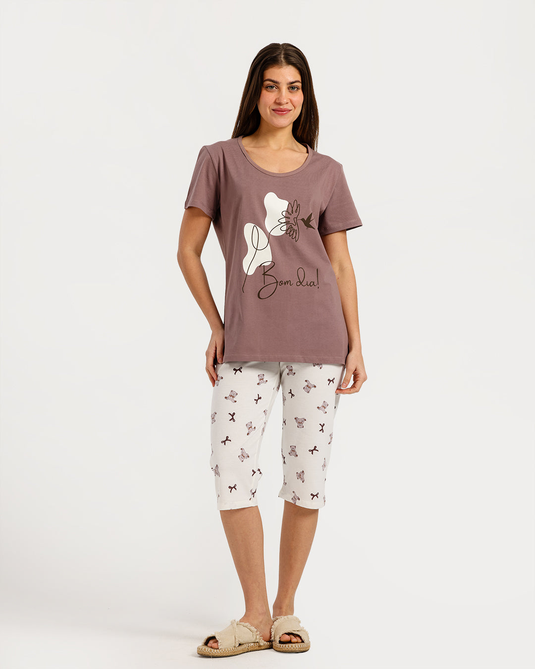 بيجامة حريمي نص كم مع بنطلون كابري