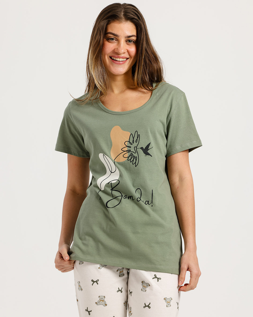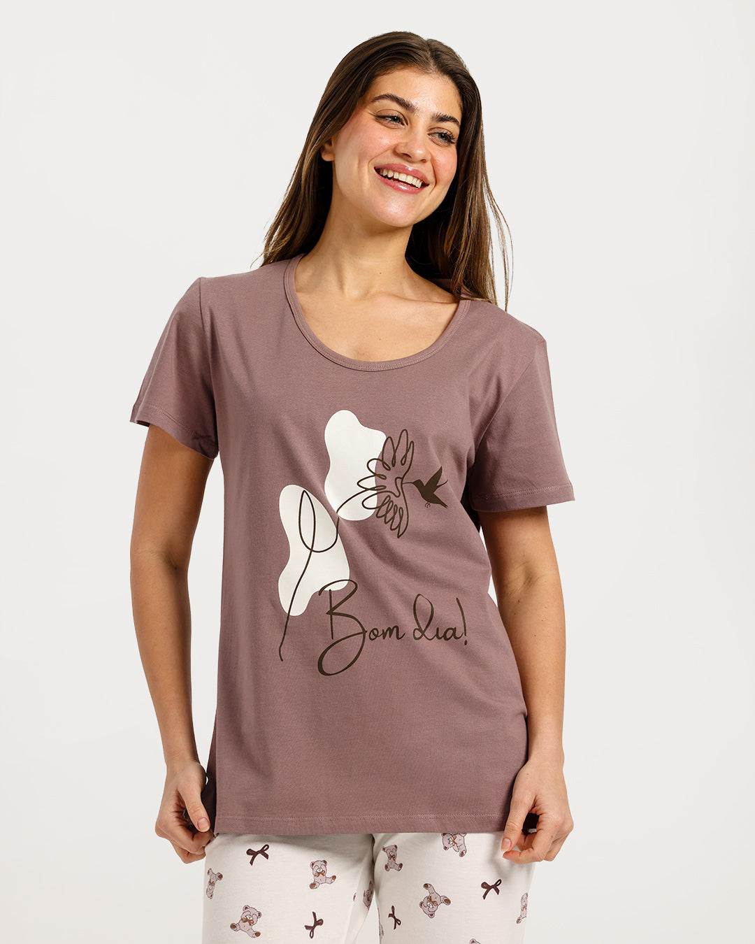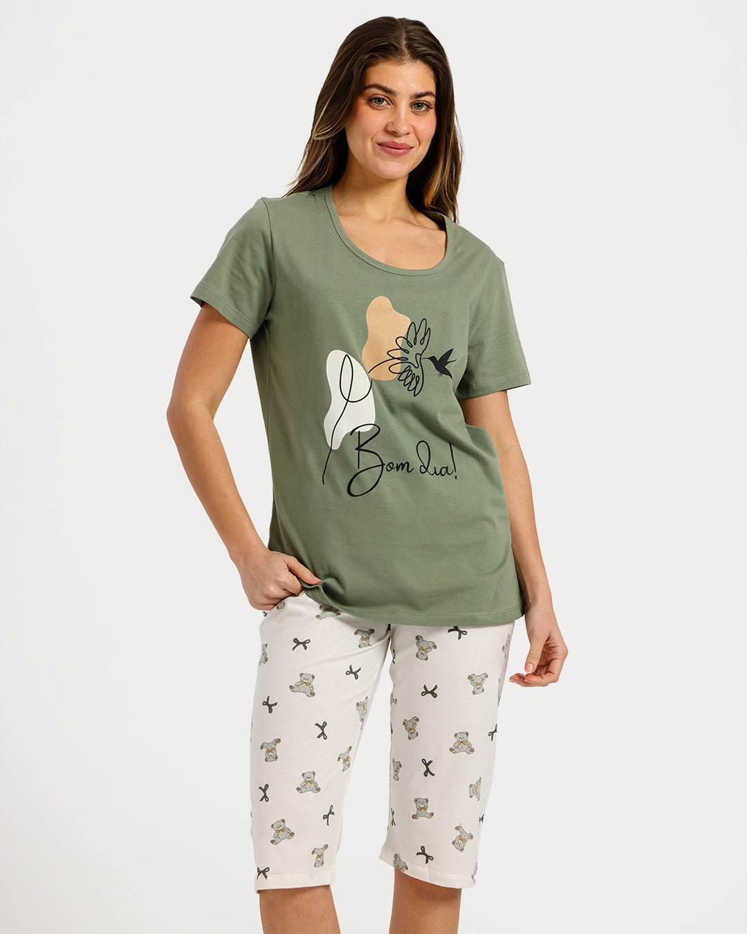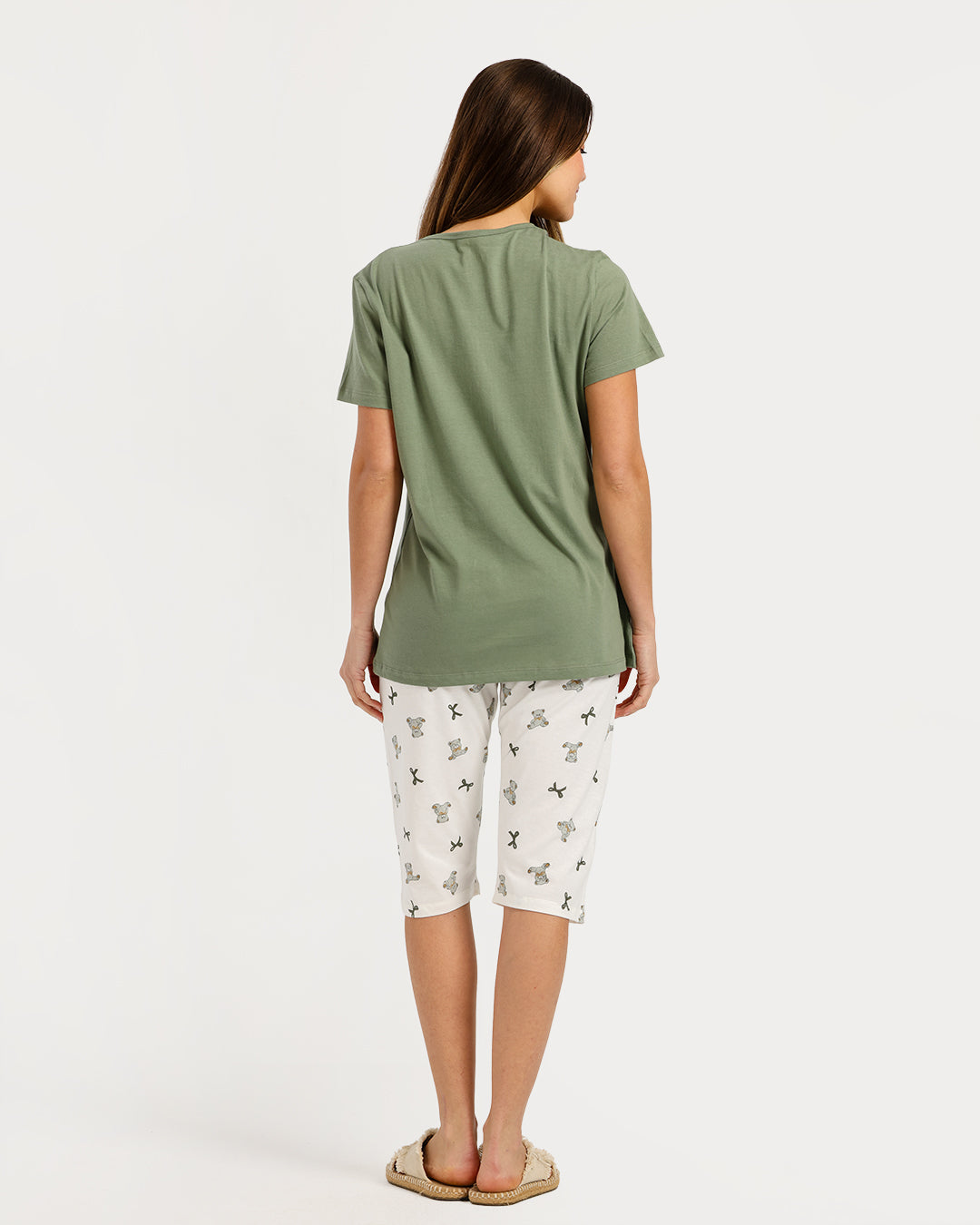 بيجامة حريمي نص كم مع بنطلون كابري