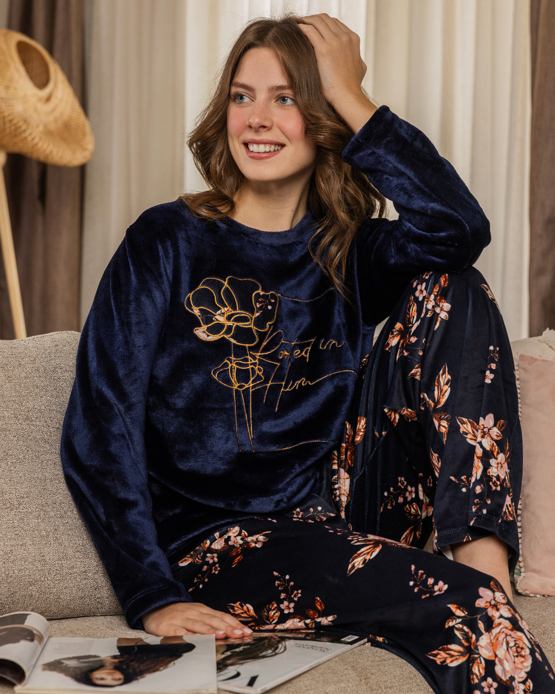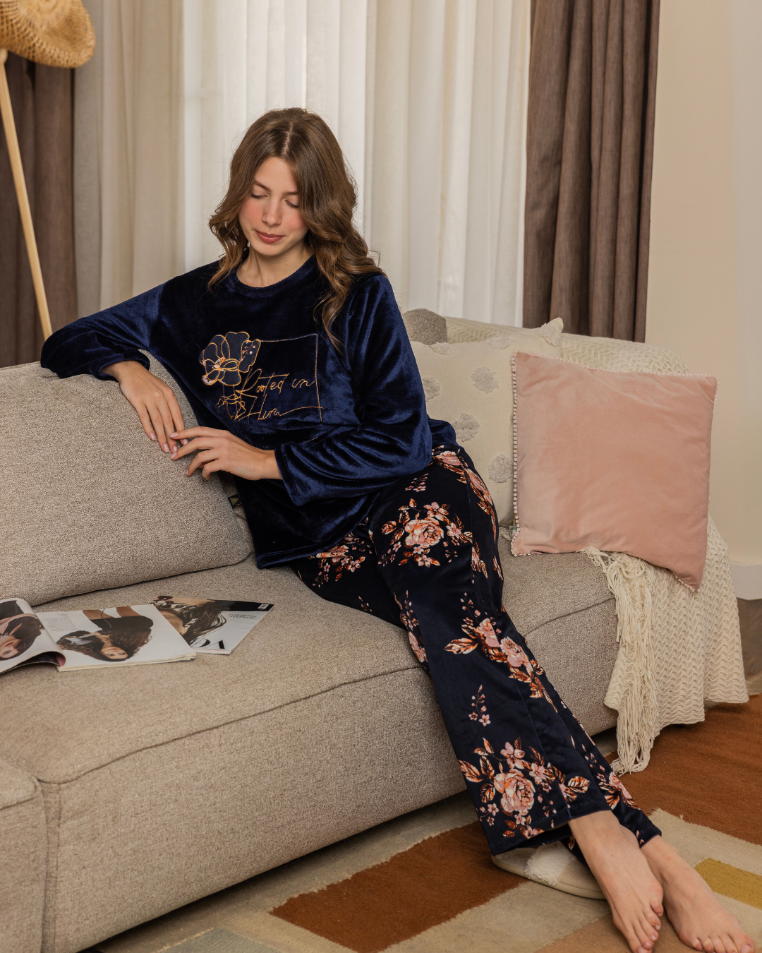 بيجامه حريمي تطريز برواز بنطلون وردة هايدي