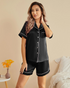 بيجامه حريمي ستان تيشرت نص كم بزراير وشورت كلاسيك