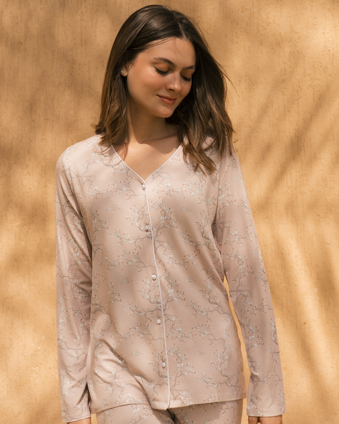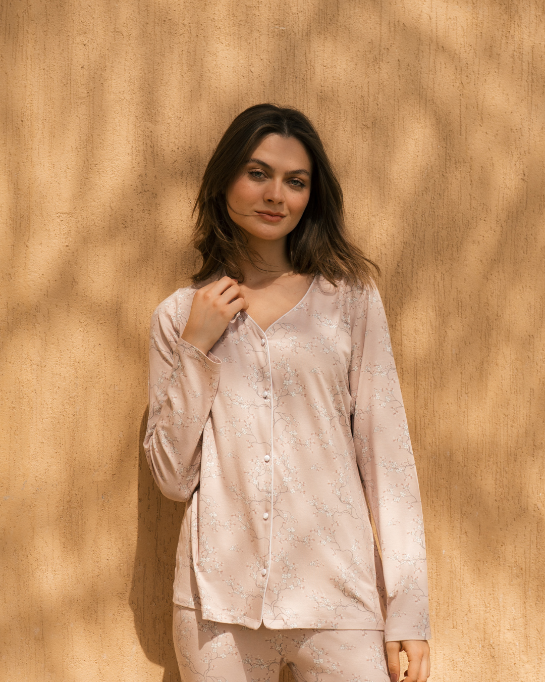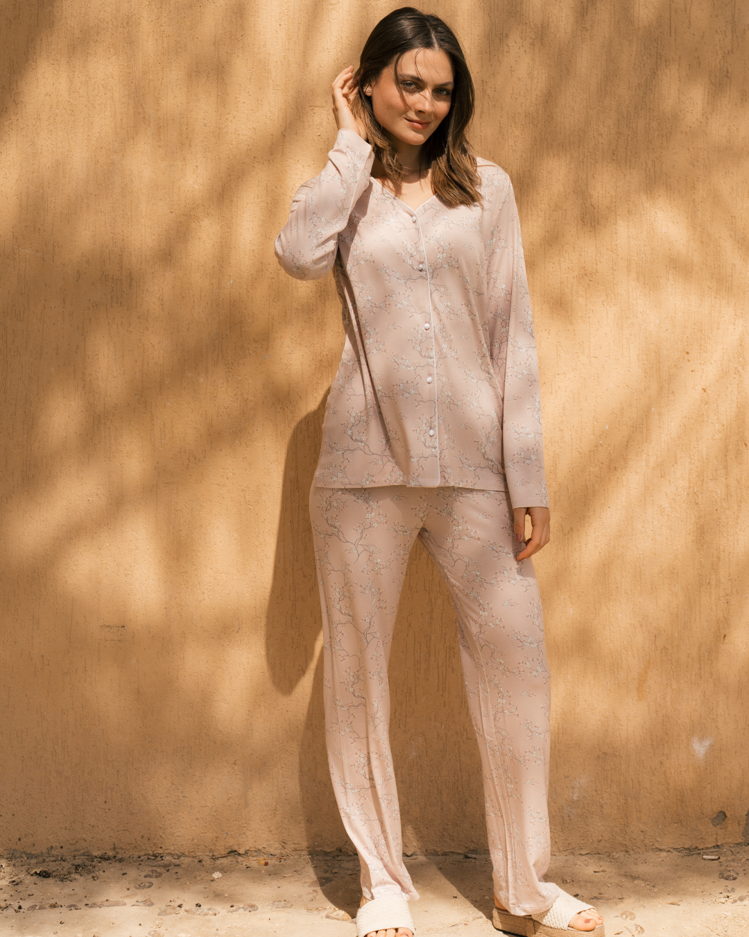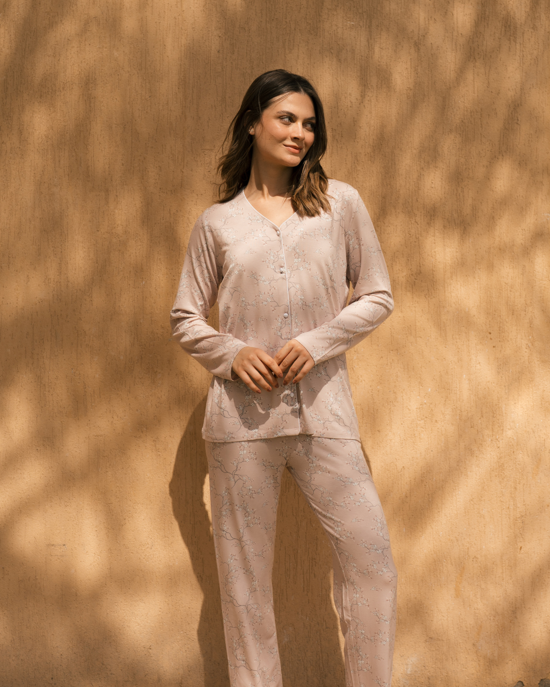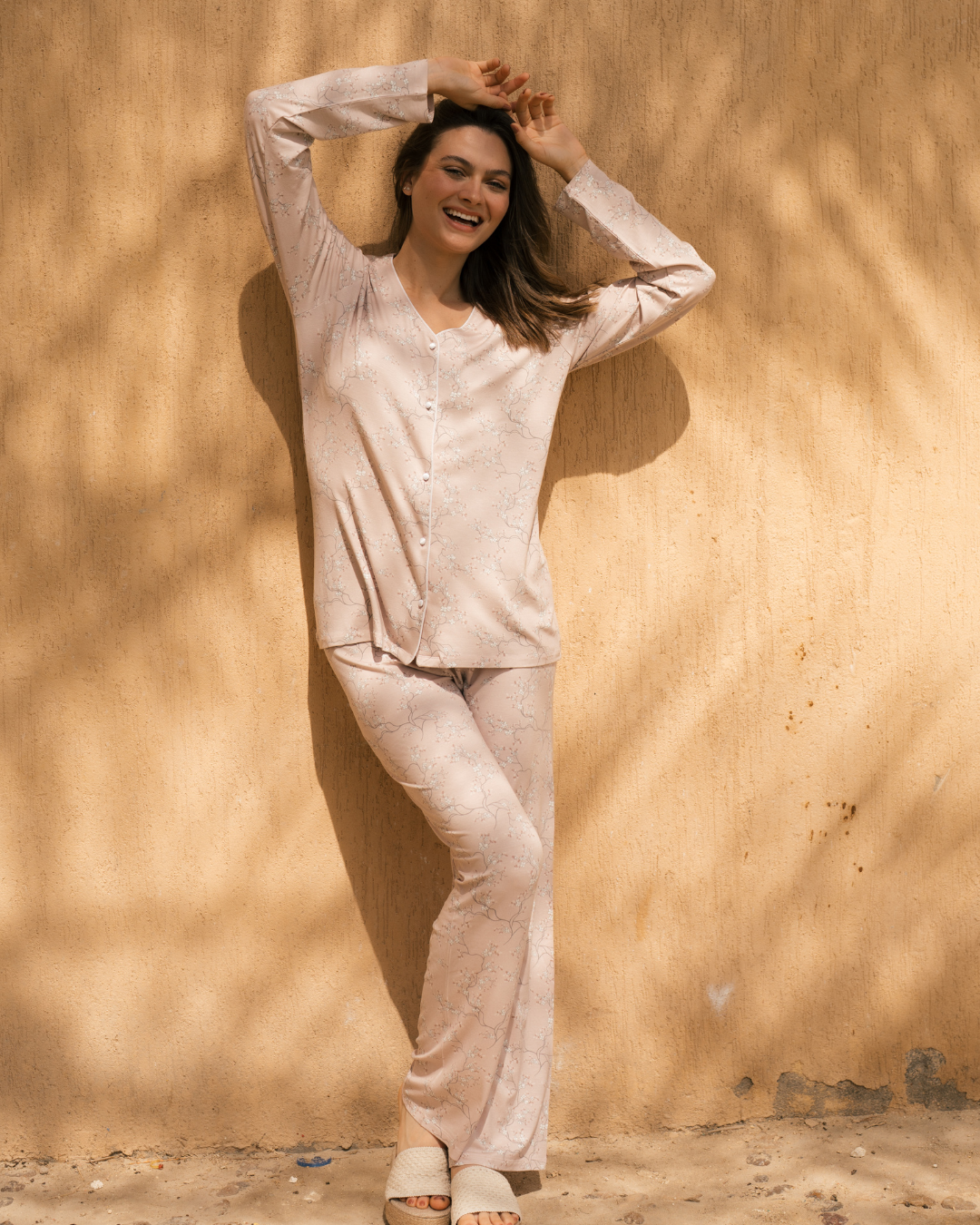بيجامه حريمي ليكرا بايوت بمرد طويل ليزريه بكم وبنطلون