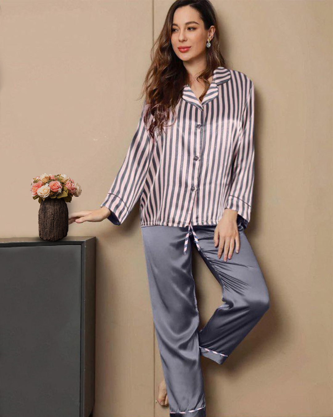 بيجامه حريمي مقلم طول بنطلون