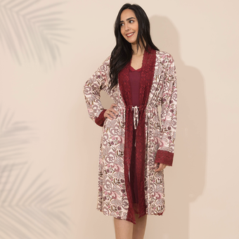 روب حريمي بقميص نوم مشجر
