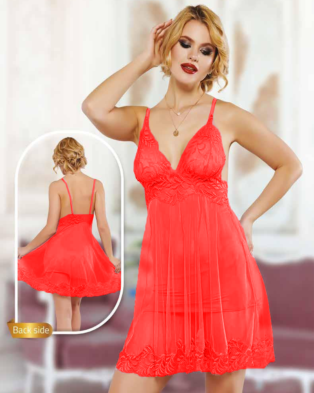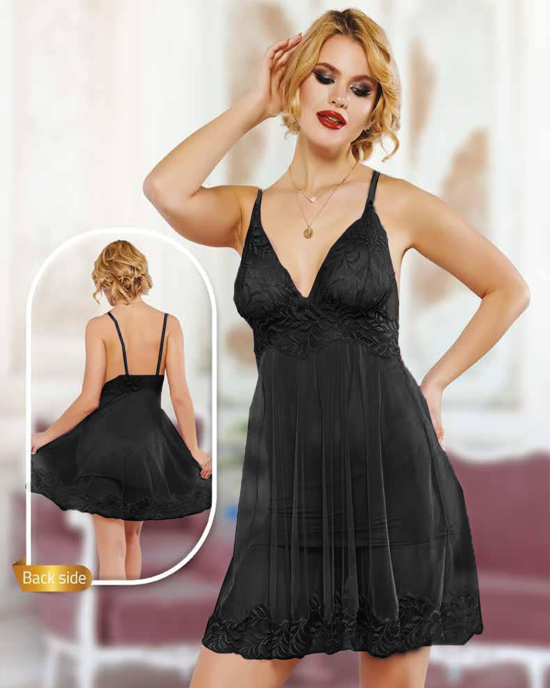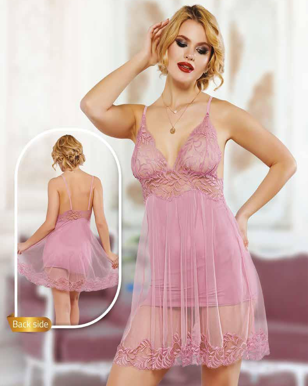 طقم نايت شيرت قصير حماله دانتيل